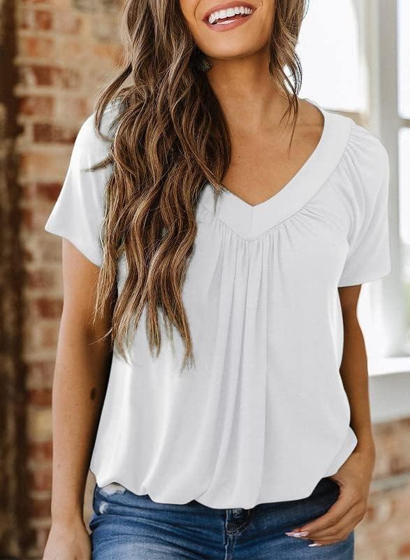 Dokotoo Women’s Casual Summer T Shirts Short Sleeve V Neck Tops Tshirts(White)