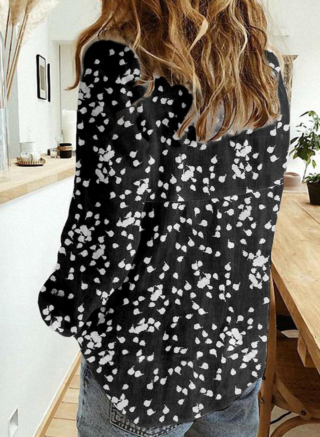 Dokotoo Women’s Casual V Neck Alicia Floral Print Roll Up Long Sleeve Chiffon Button Down Blouses Bohemian Top Shirts(Black)