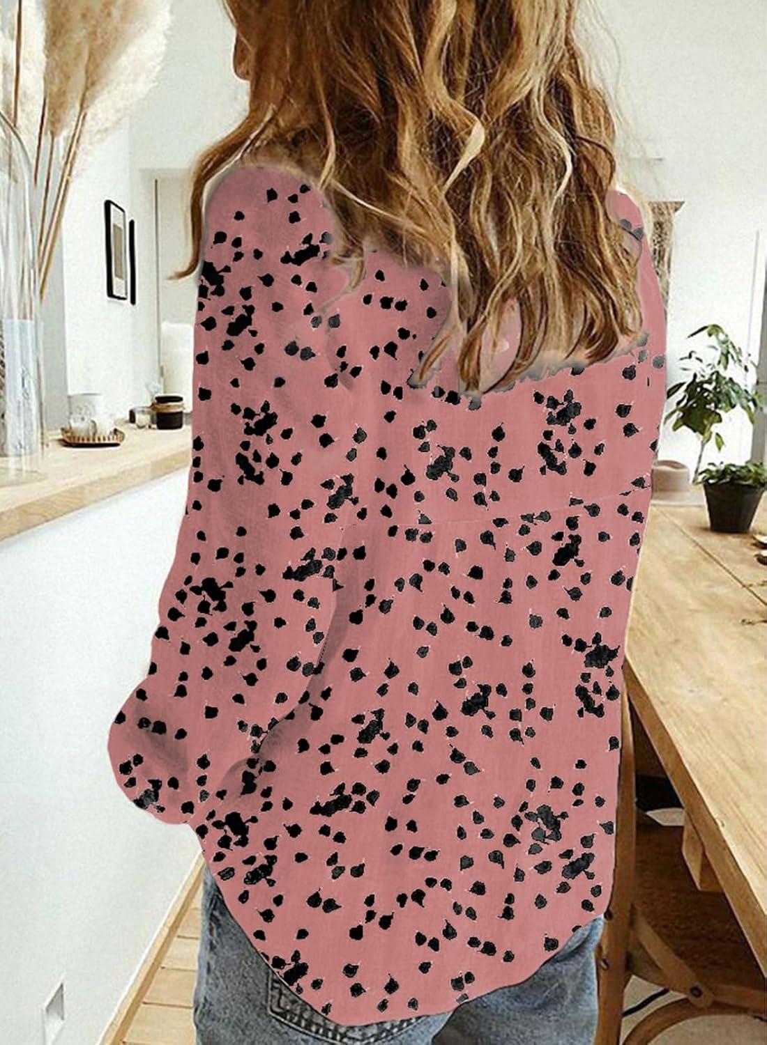 Dokotoo Women’s Casual V Neck Alicia Floral Print Roll Up Long Sleeve Chiffon Button Down Blouses Bohemian Top Shirts(Pink)
