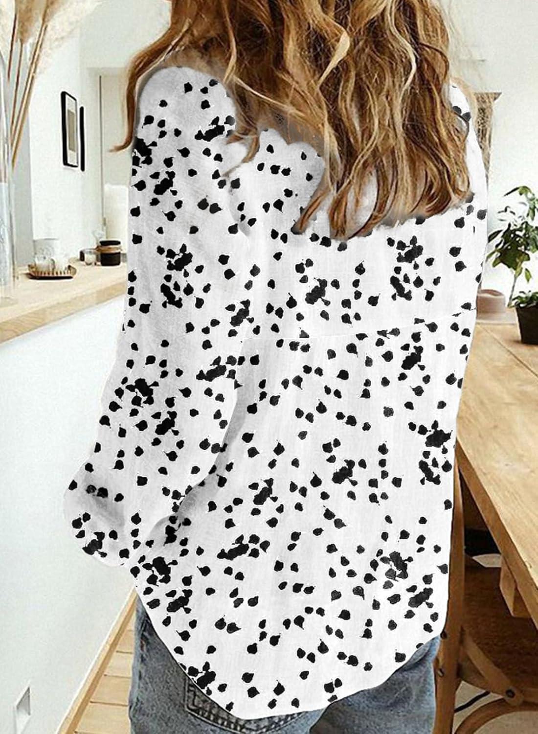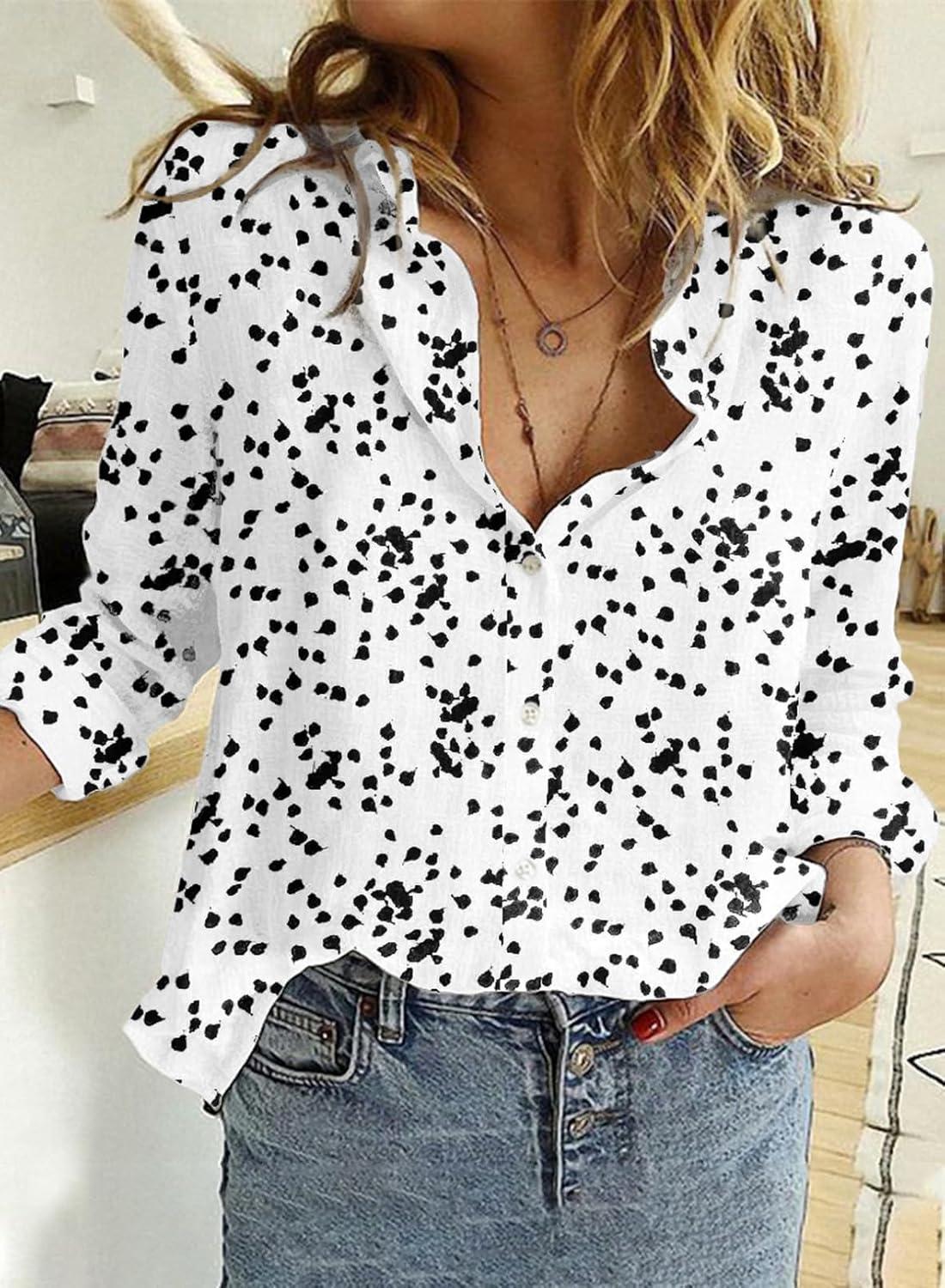 Dokotoo Women’s Casual V Neck Alicia Floral Print Roll Up Long Sleeve Chiffon Button Down Blouses Bohemian Top Shirts(White)