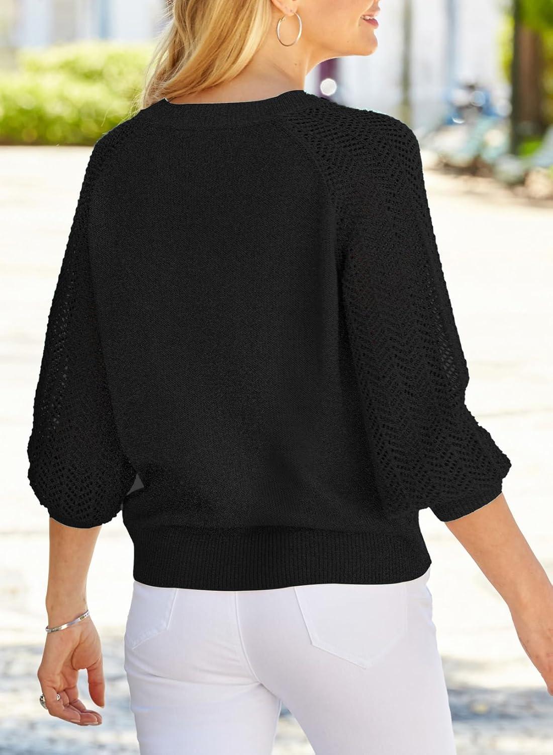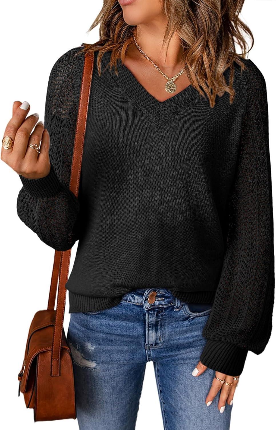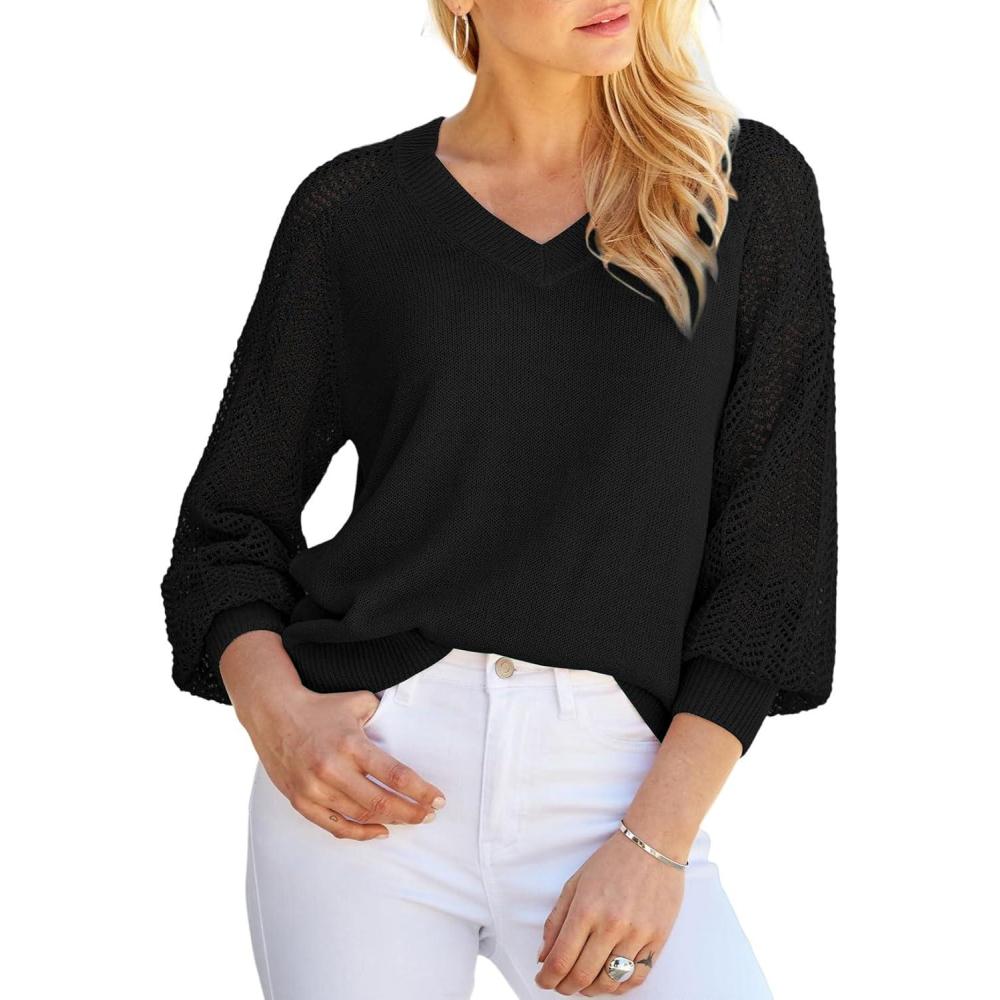Dokotoo Women’s Casual V-Neck Long Sleeve Sweaters Solid Color Pullover Knit Sweater Jumper Tops(Black)