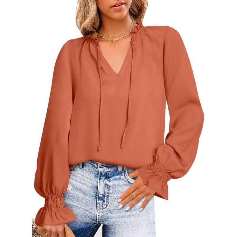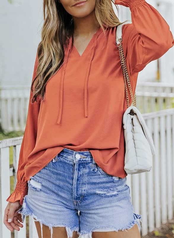 Dokotoo Women’s Casual V Neck Tops Drawstring Short Sleeve T Shirt Blouses(C Red)