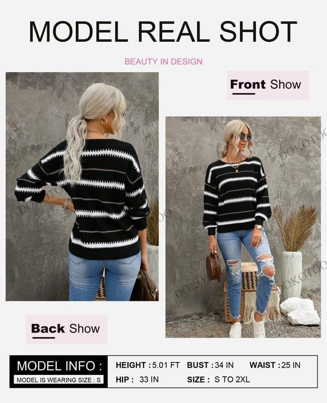 Dokotoo Womens Color Block Sweaters Long Sleeve Crewneck Pullover Knit Jumper Tops(A2 Black)