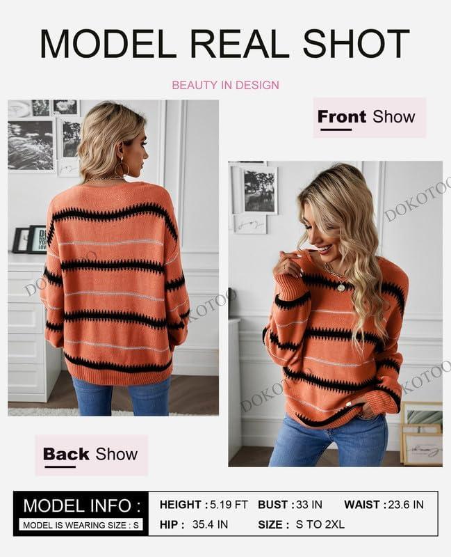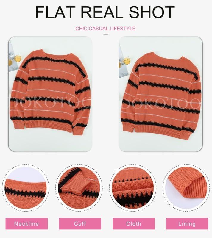Dokotoo Womens Color Block Sweaters Long Sleeve Crewneck Pullover Knit Jumper Tops
