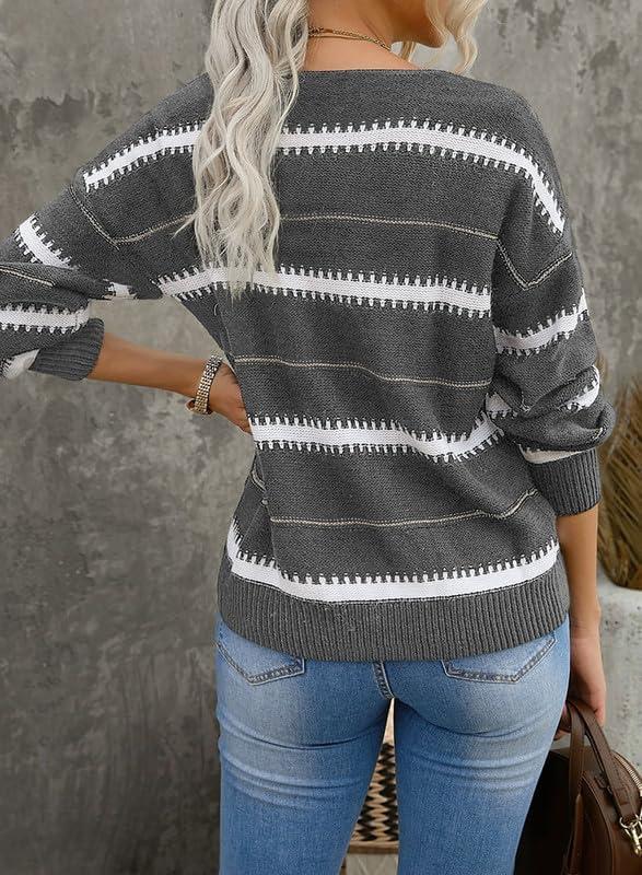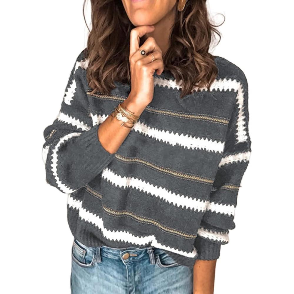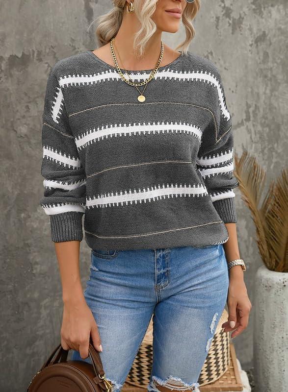 Dokotoo Womens Color Block Sweaters Long Sleeve Crewneck Pullover Knit Jumper Tops(A3 Grey)