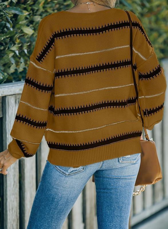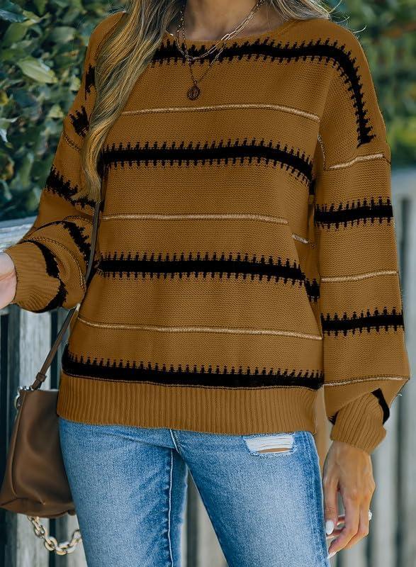 Dokotoo Womens Color Block Sweaters Long Sleeve Crewneck Pullover Knit Jumper Tops(A4 Brown)