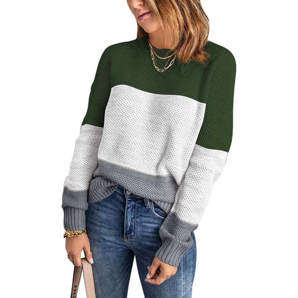 Save up to 40% on Dokotoo Womens Color Block Sweaters Long Sleeve Crewneck Pullover Knit Jumper Tops(D Green) styles during our end-of-season sale.