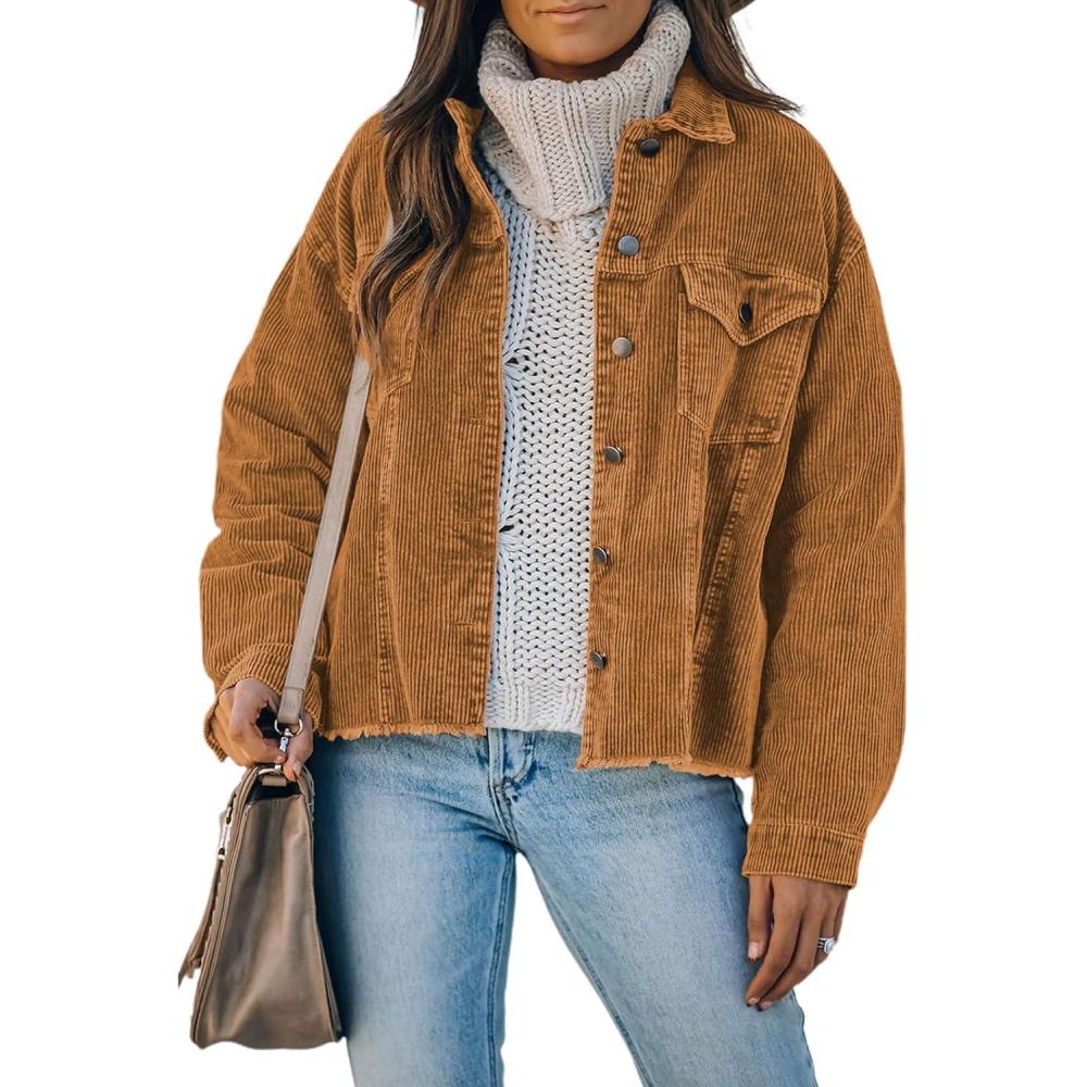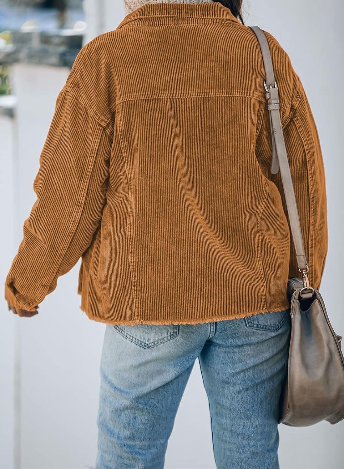 Dokotoo Womens Corduroy Jackets Button Down Long Sleeve Casual Shacket Coats Outwear(A Brown)