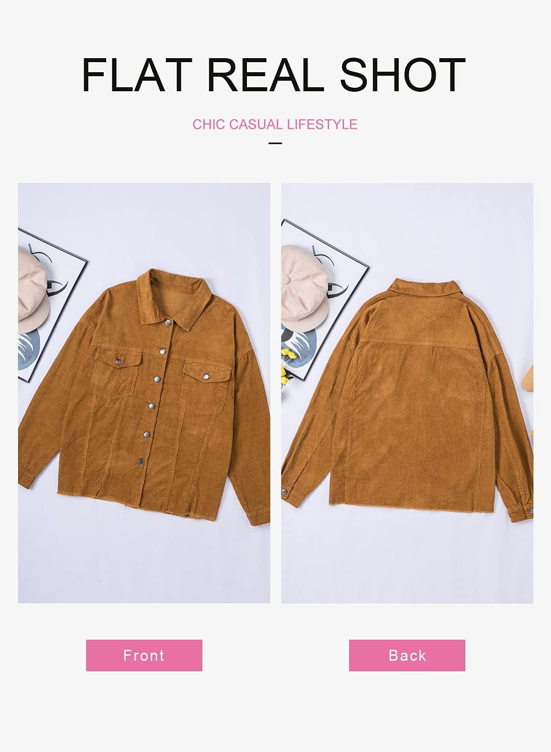 Dokotoo Womens Corduroy Jackets Button Down Long Sleeve Casual Shacket Coats Outwear