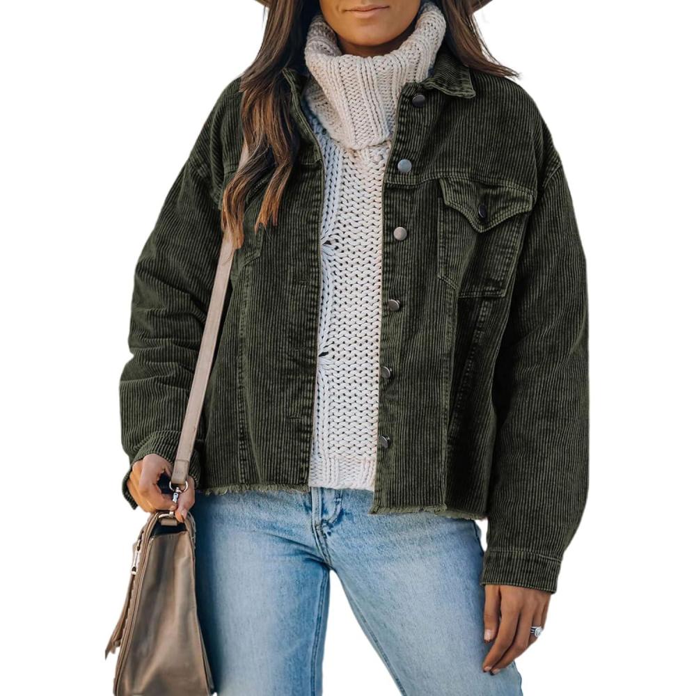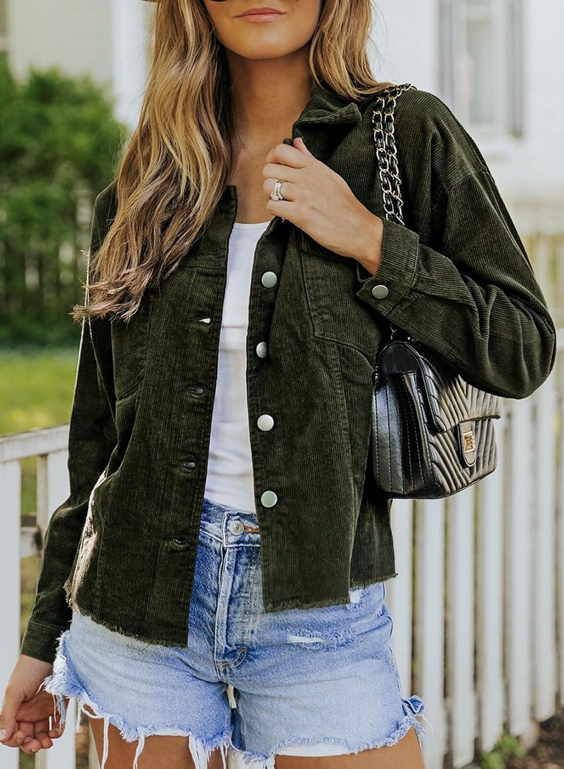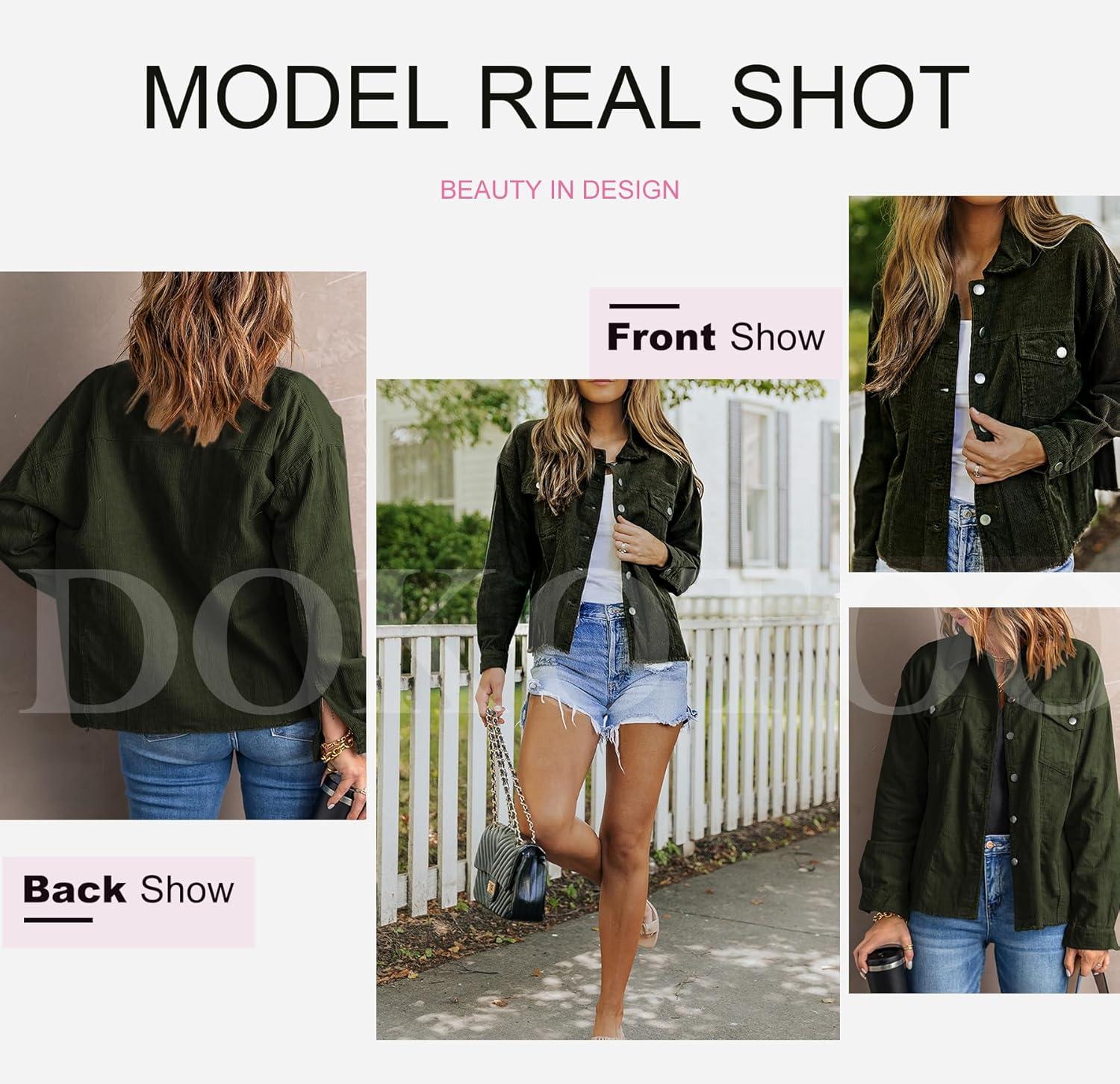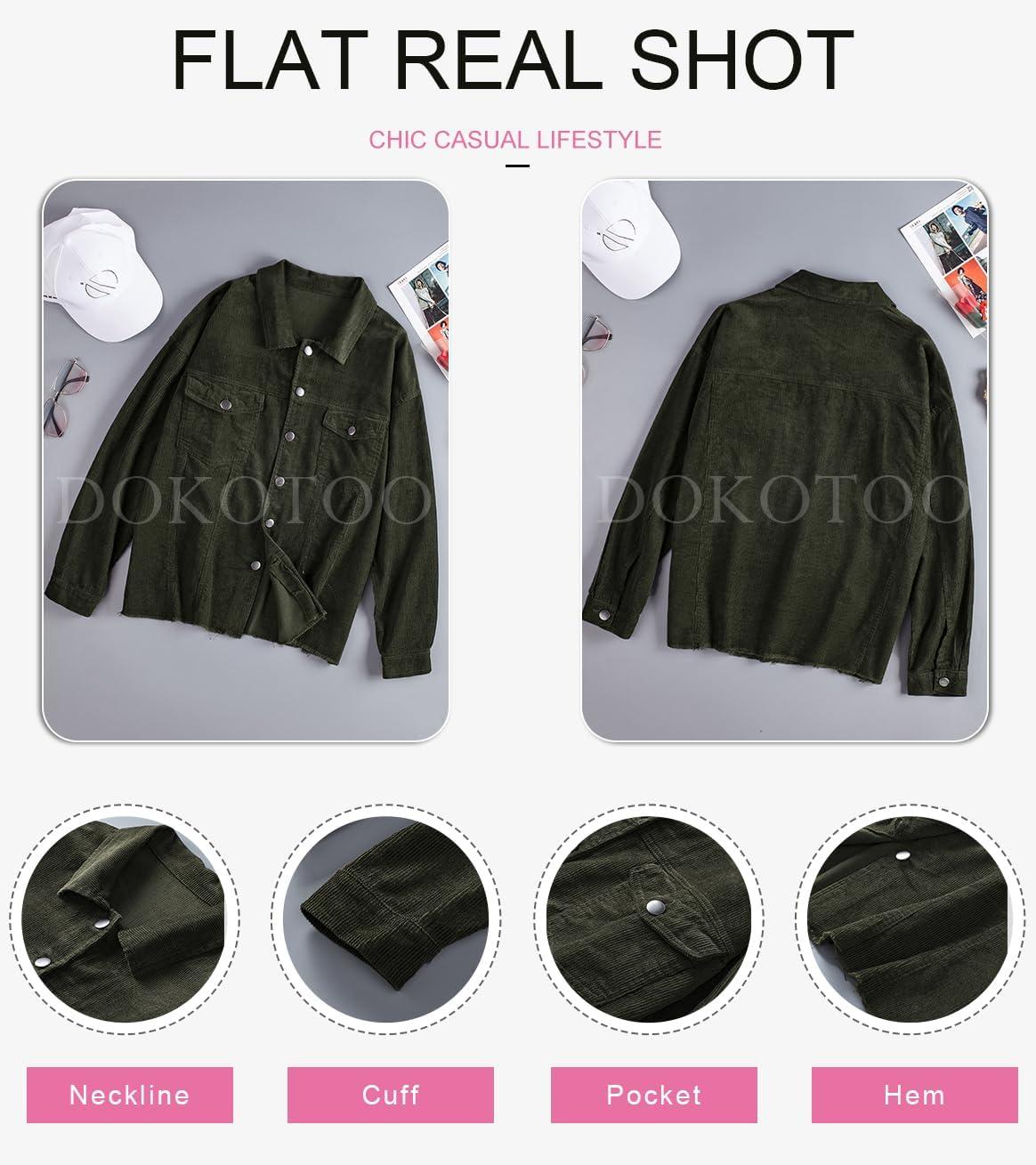 Dokotoo Womens Corduroy Jackets Button Down Long Sleeve Casual Shacket Coats Outwear(A Green)