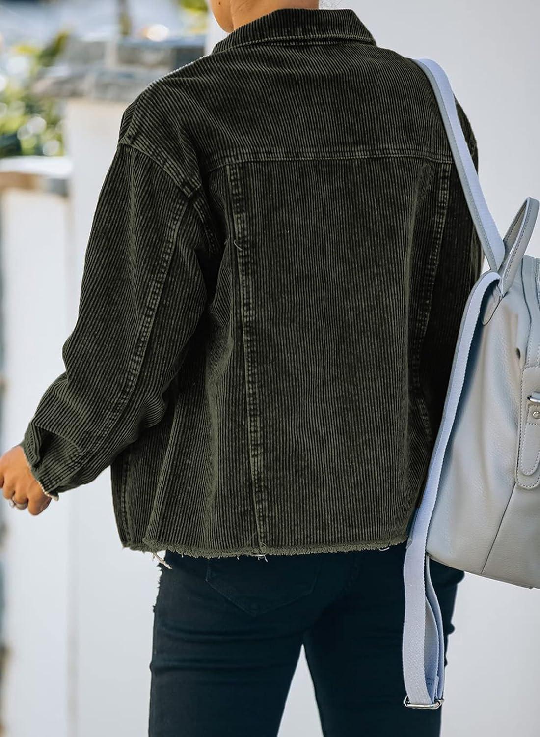 Dokotoo Womens Corduroy Jackets Button Down Long Sleeve Casual Shacket Coats Outwear(A Dark Khaki)