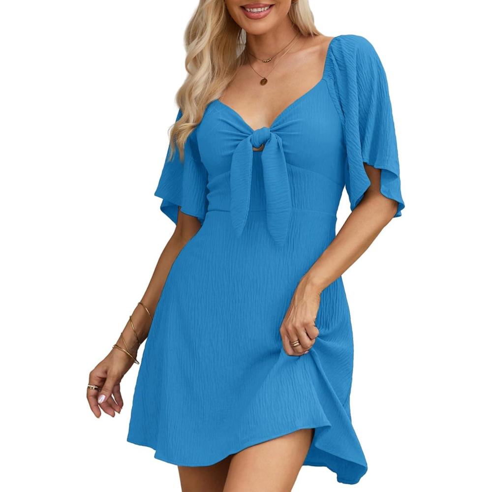 Be the first to review “Dokotoo Womens Dresses 2025 Summer Fall Deep V Neck Elegant Bow tie Mini Dress S-XL(B Blue)”