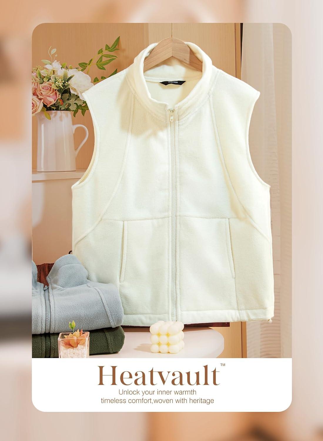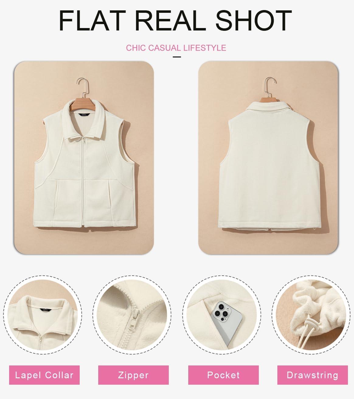 Dokotoo Women’s Full Zip Polar Fleece Vest Warm Winter Sleeveless Cardigan Lapel Collar Sherpa Coat Outerwear with Pocket(Beige)