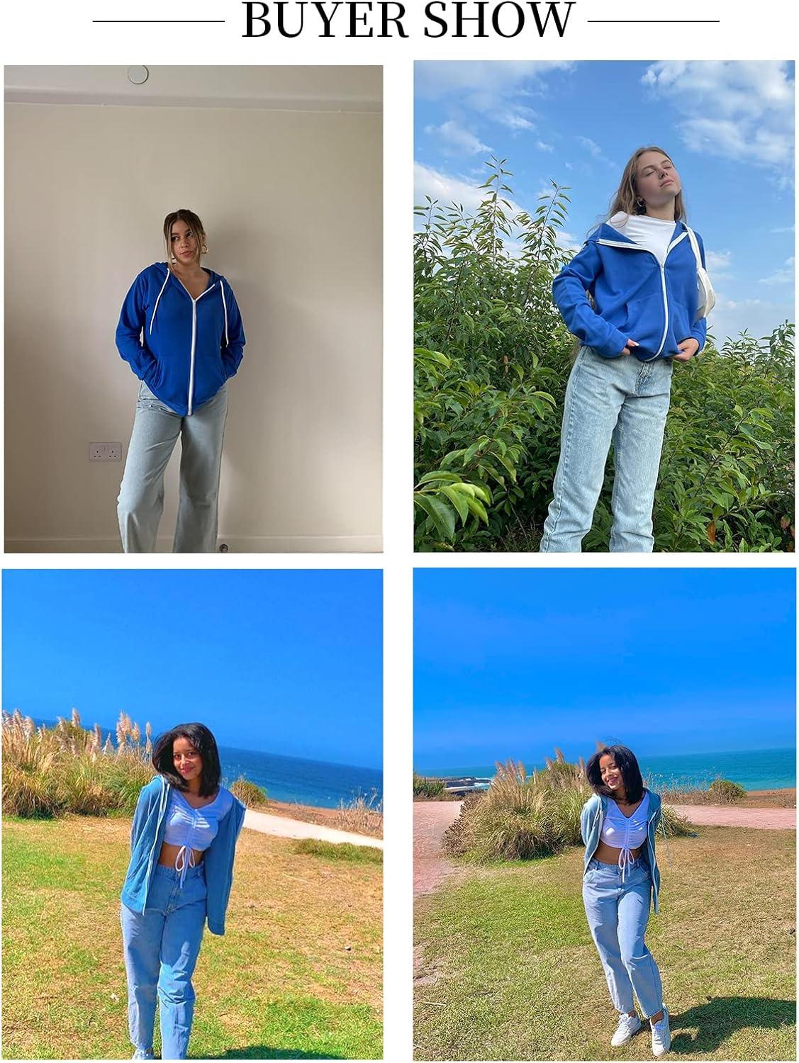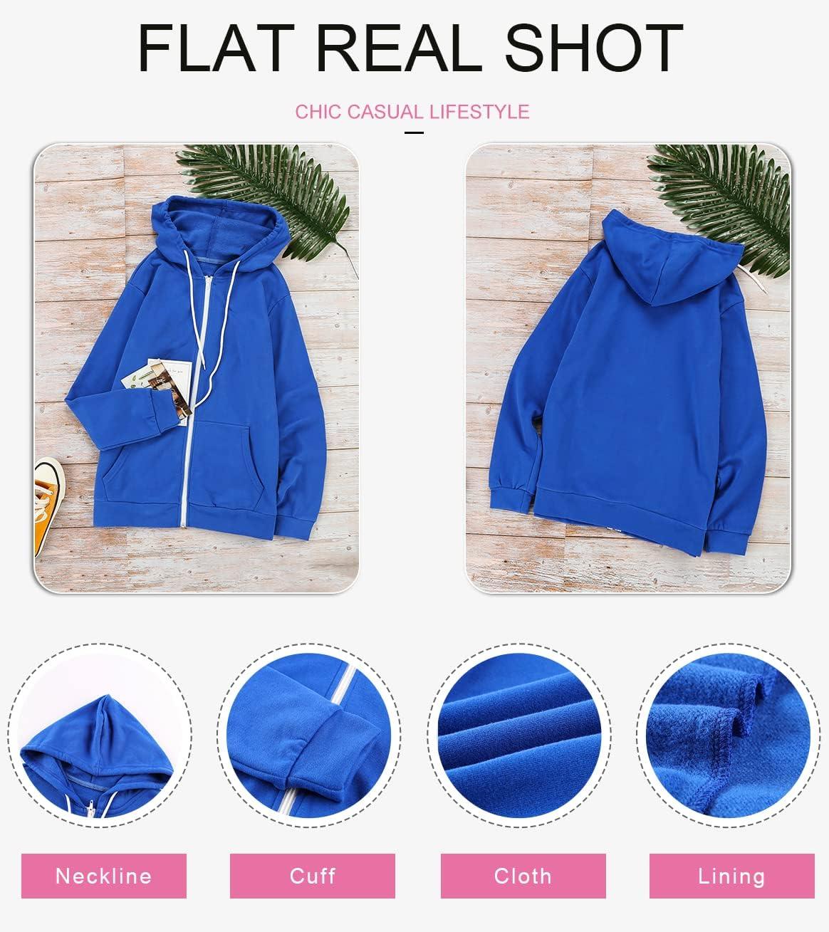 Dokotoo Women’s Full Zip Up Hoodie Long Sleeve Hooded Sweatshirts Pockets Jacket Coat for Women(A Blue)