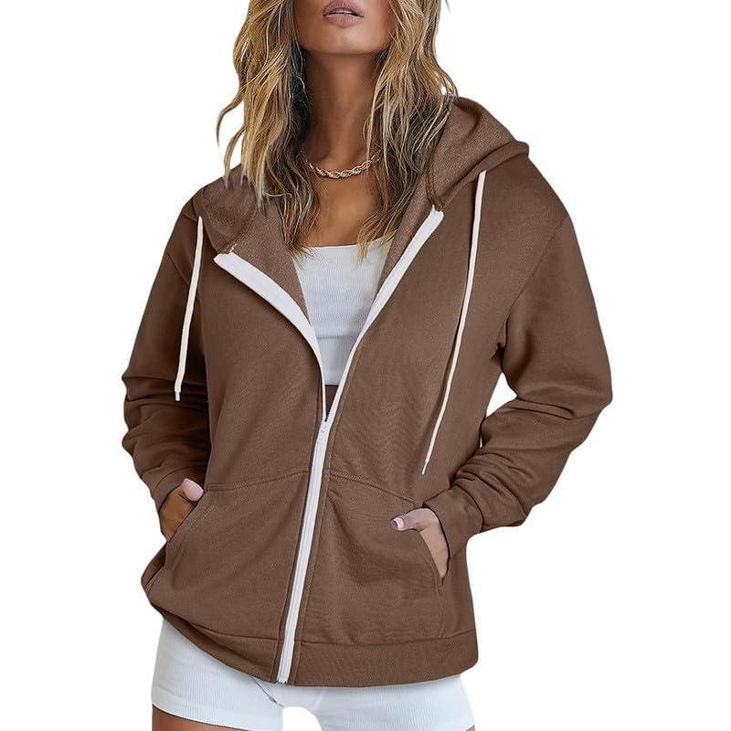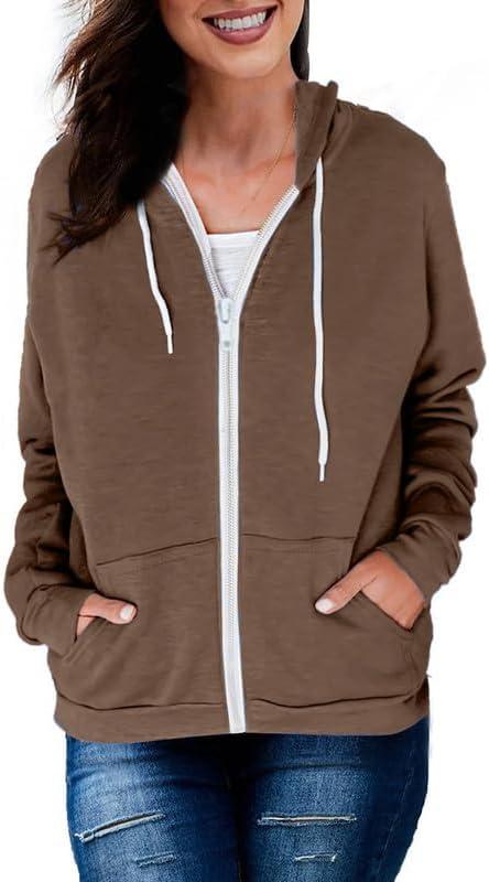 Dokotoo Women’s Full Zip Up Hoodie Long Sleeve Hooded Sweatshirts Pockets Jacket Coat for Women(A Coffee)