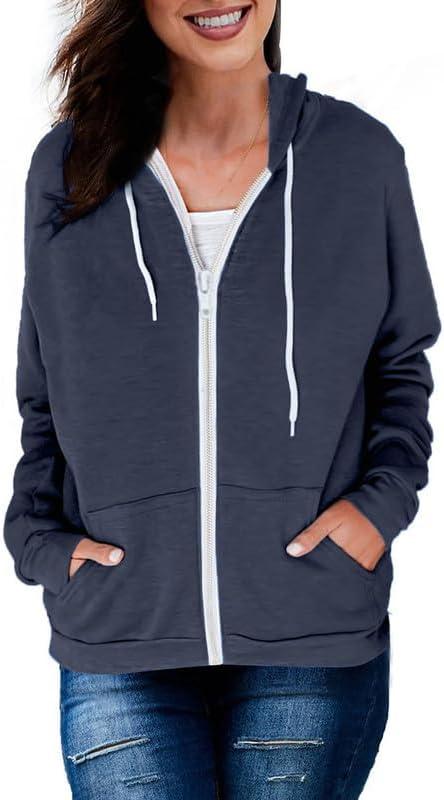 Dokotoo Women’s Full Zip Up Hoodie Long Sleeve Hooded Sweatshirts Pockets Jacket Coat for Women(A Blue)
