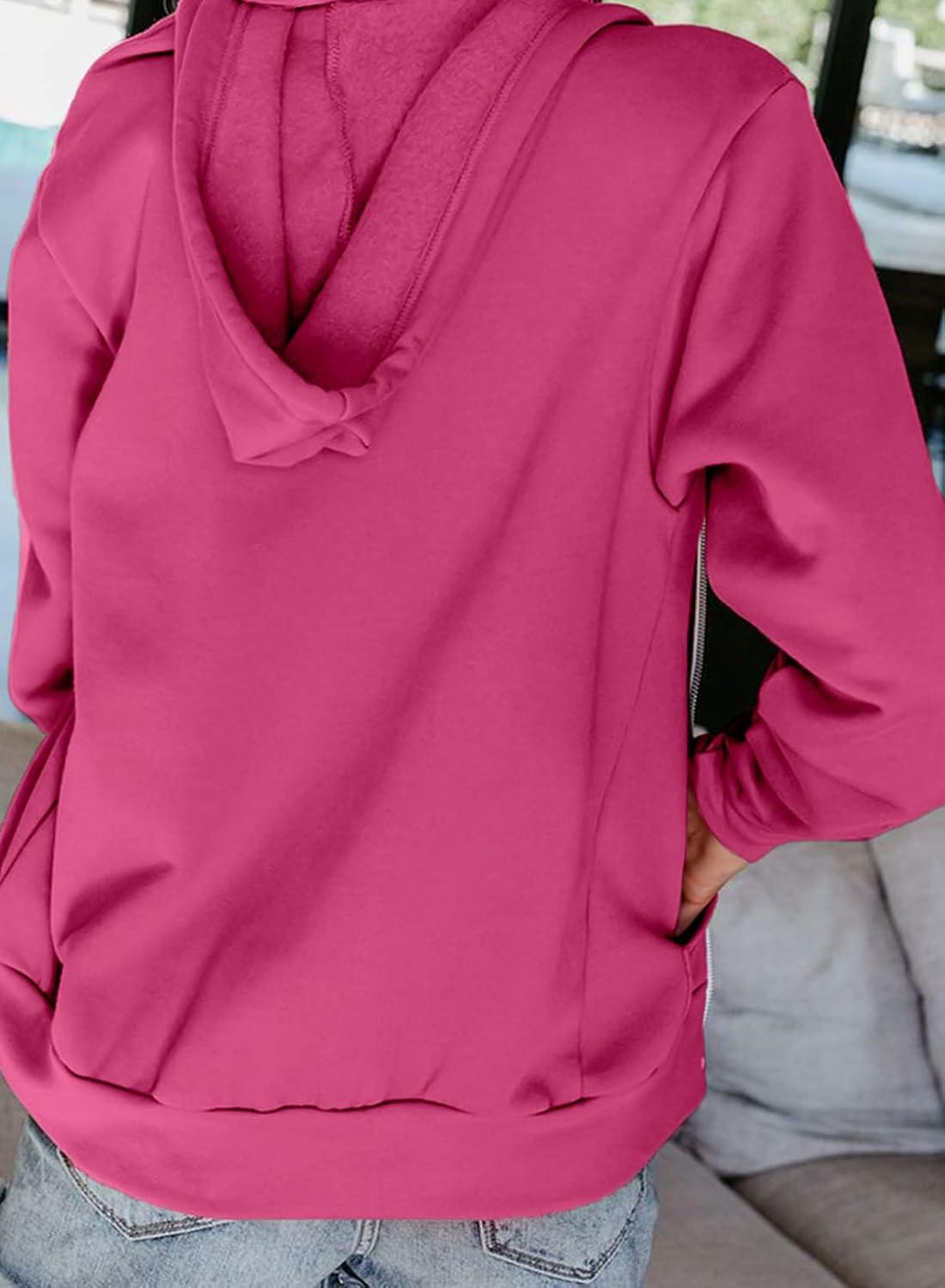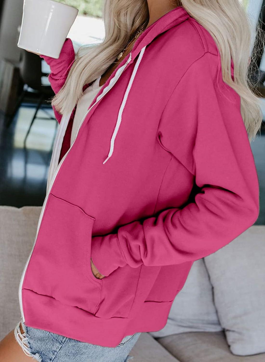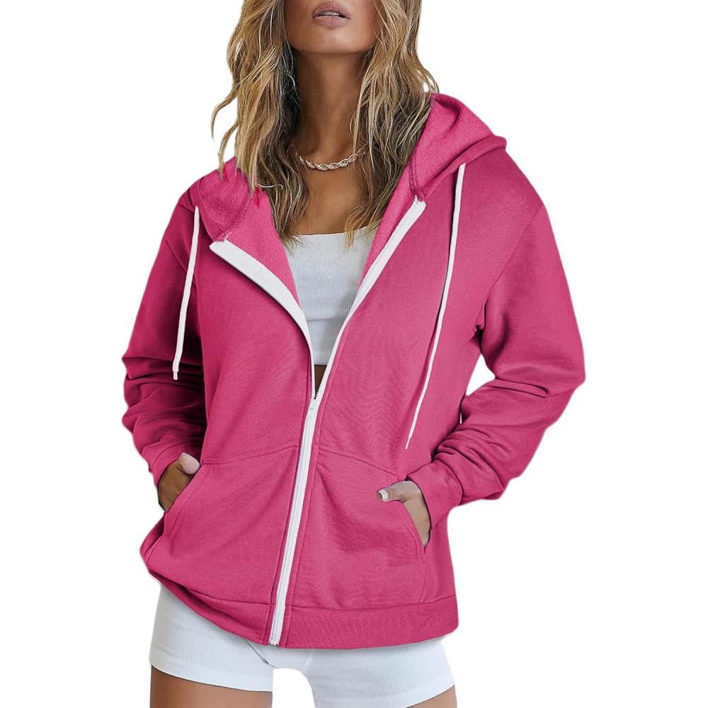 Dokotoo Women’s Full Zip Up Hoodie Long Sleeve Hooded Sweatshirts Pockets Jacket Coat for Women(A Rose)
