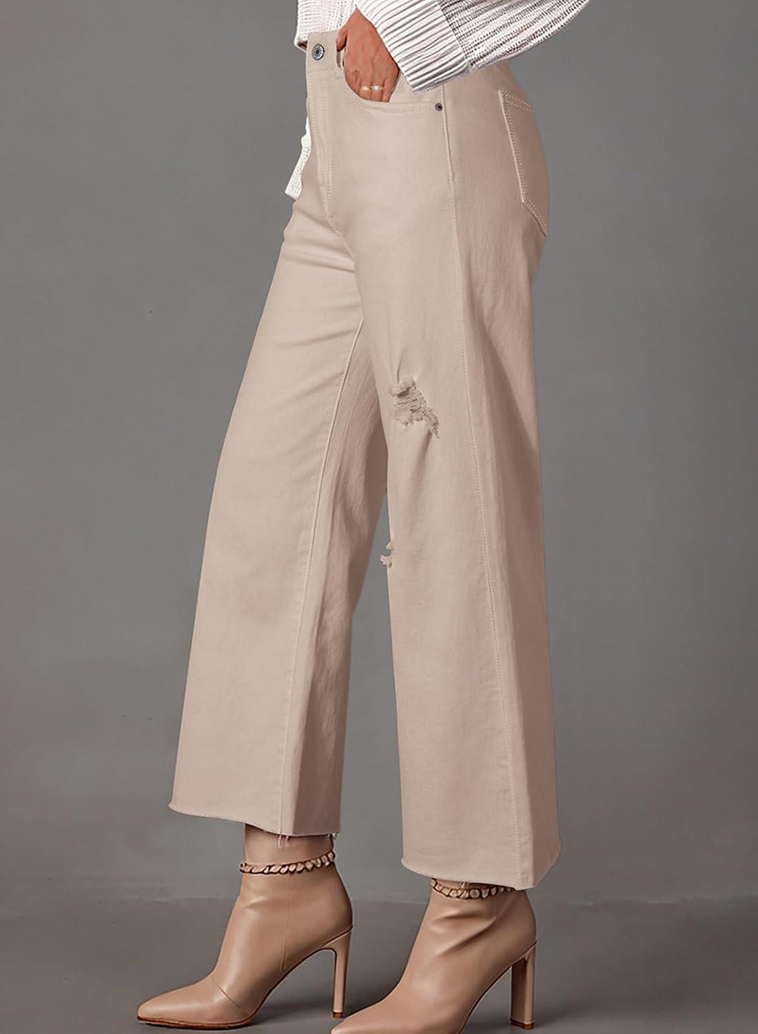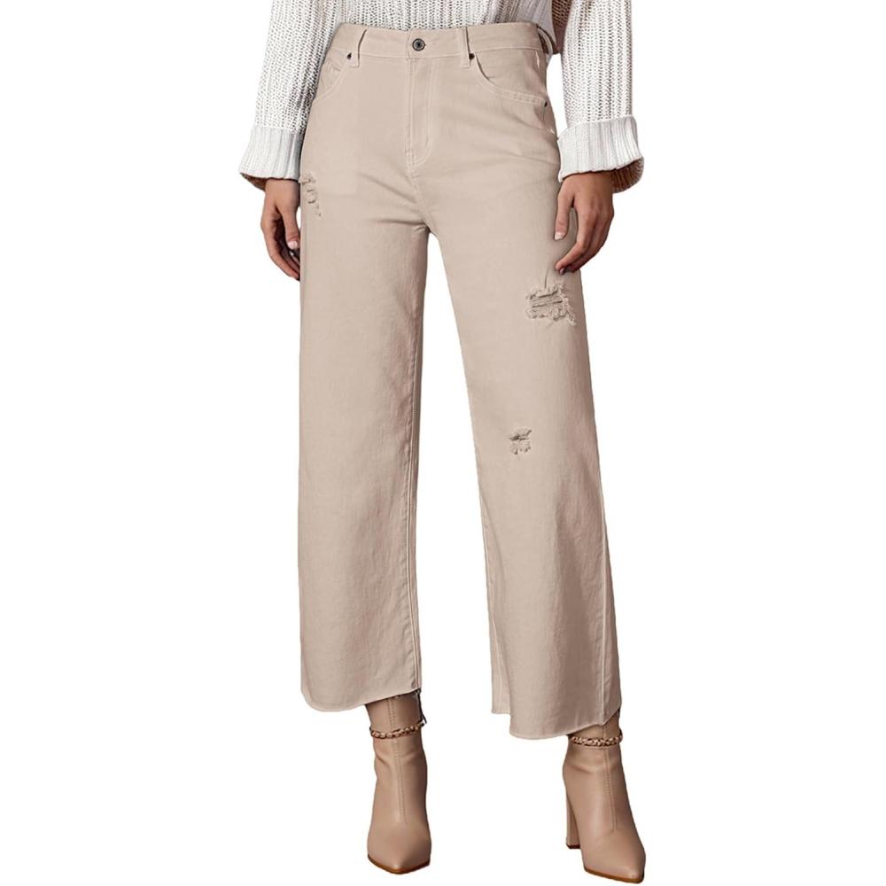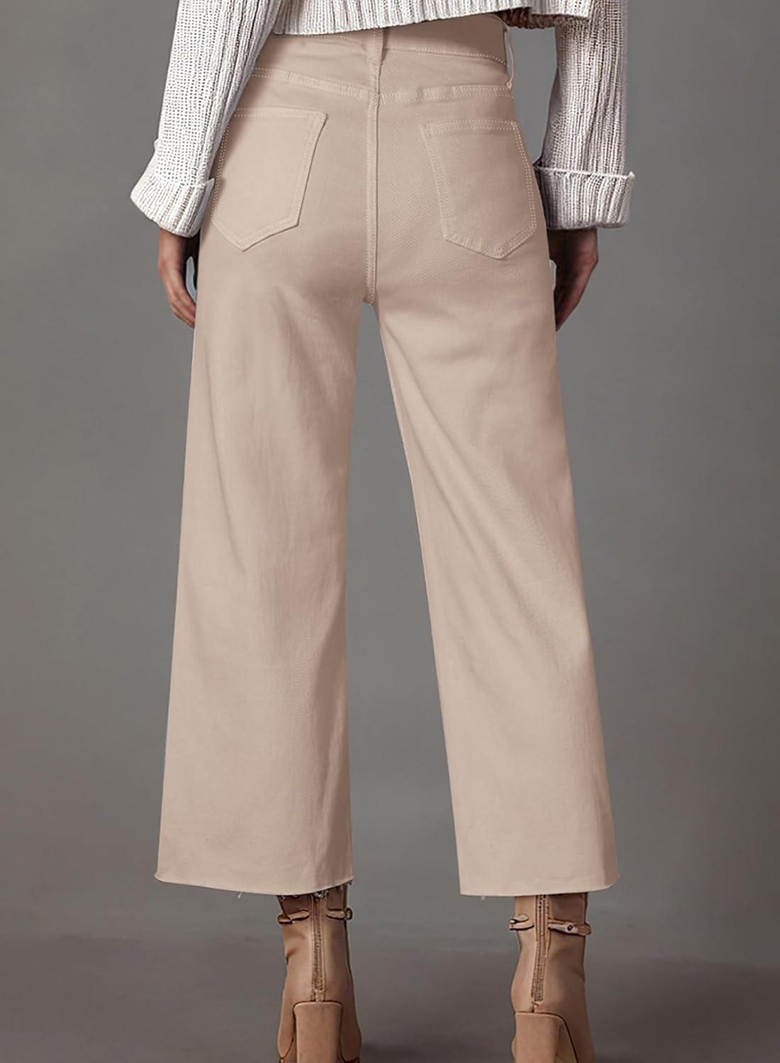 imageDokotoo Womens High Waist Baggy Jeans Wide Leg Casual Petite 2025 8 Points Length Stretch Denim PantsWhite