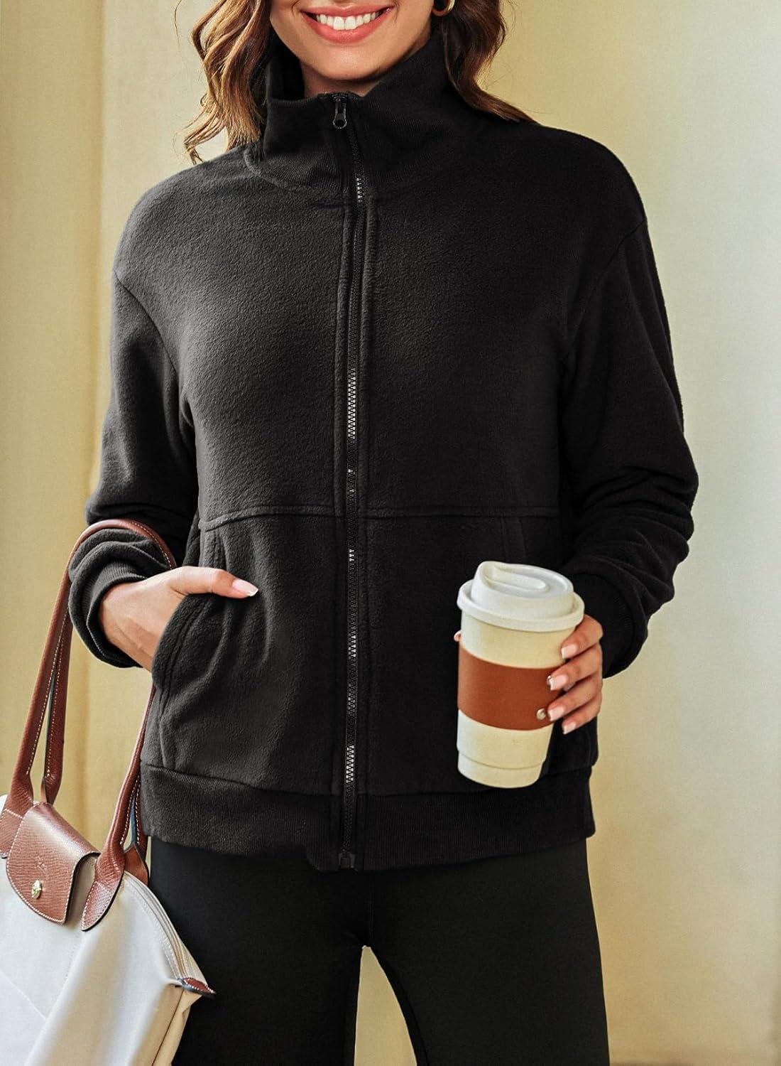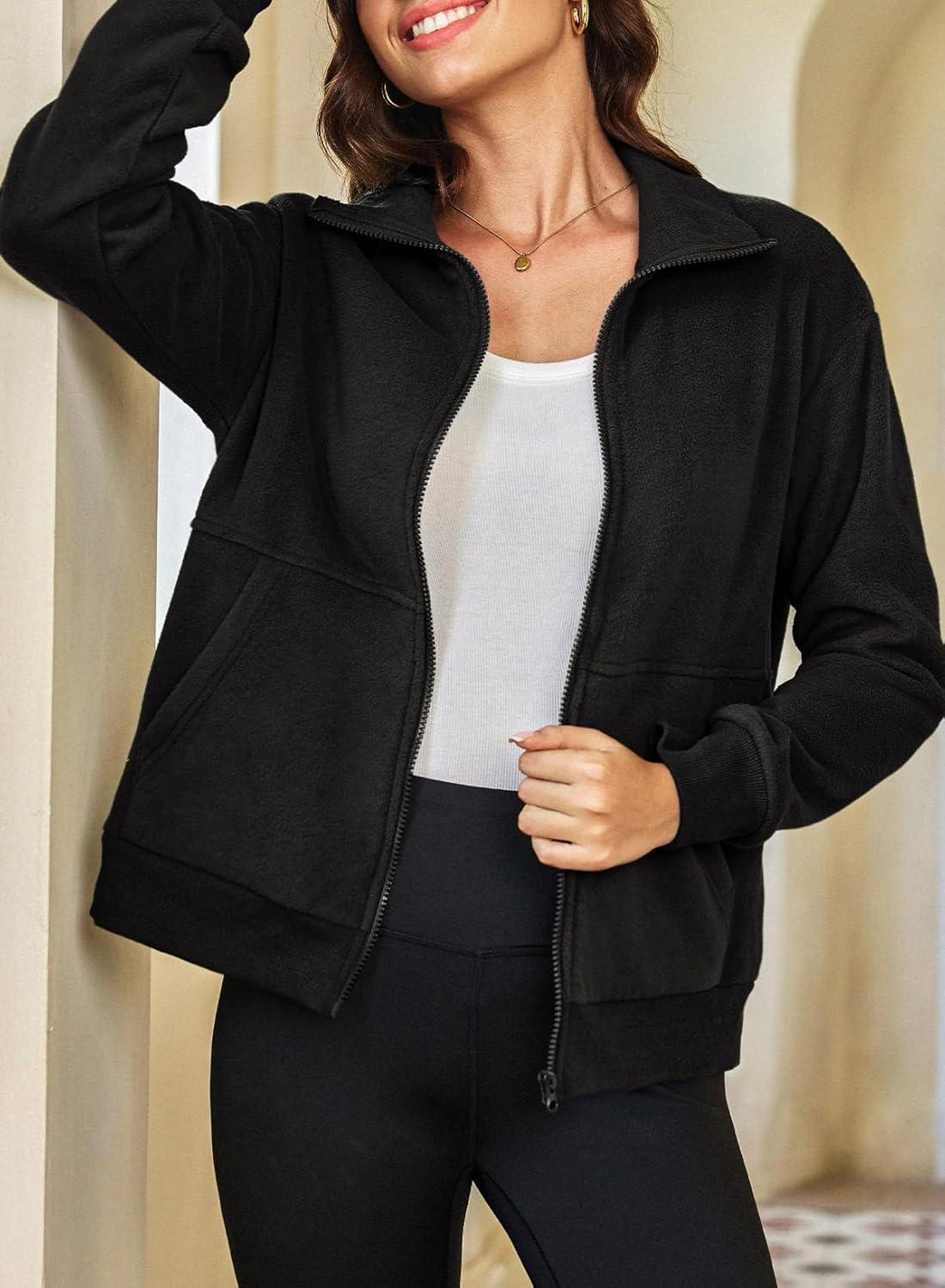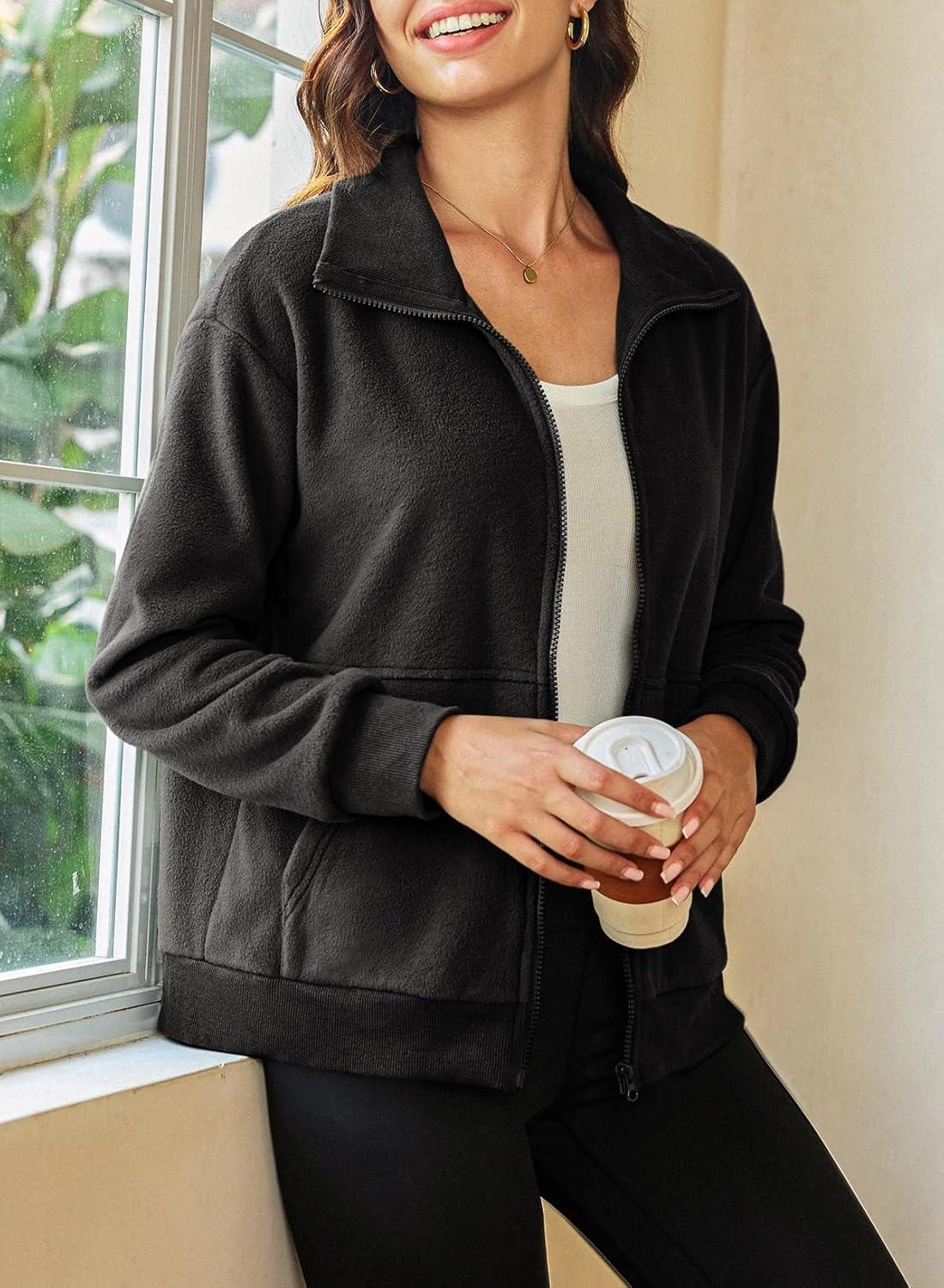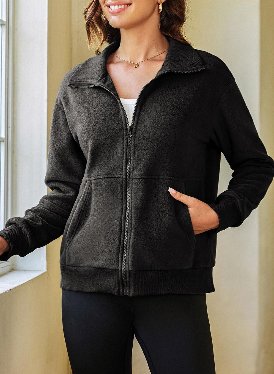 Dokotoo Women’s Lightweight Full Zip Soft Fleece Jacket 2025 Casual Sweatshirts Coat with Pockets(Black)