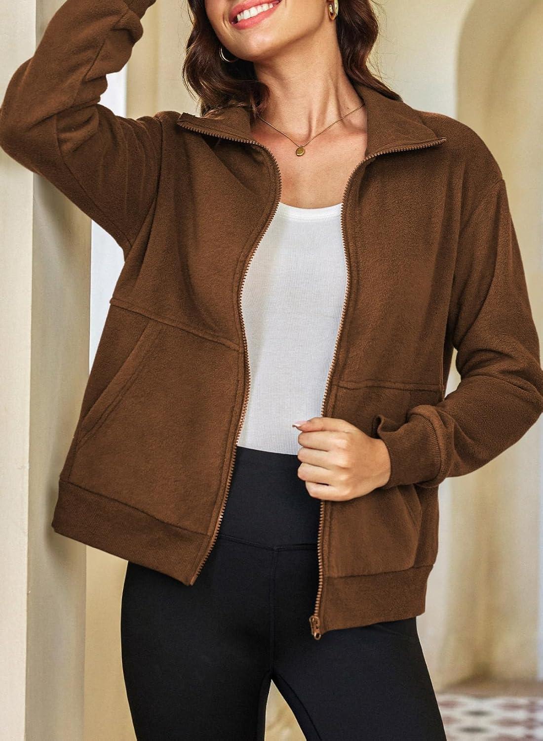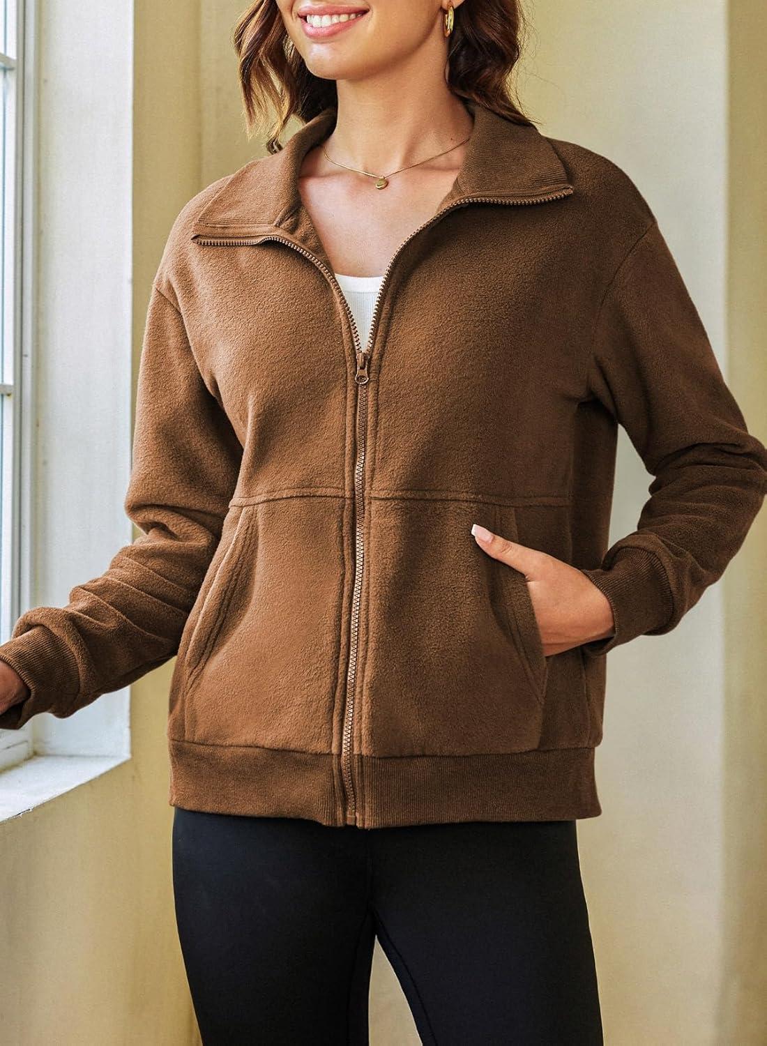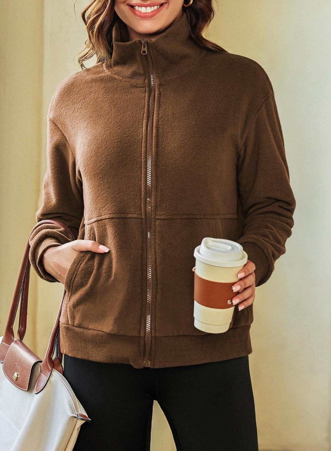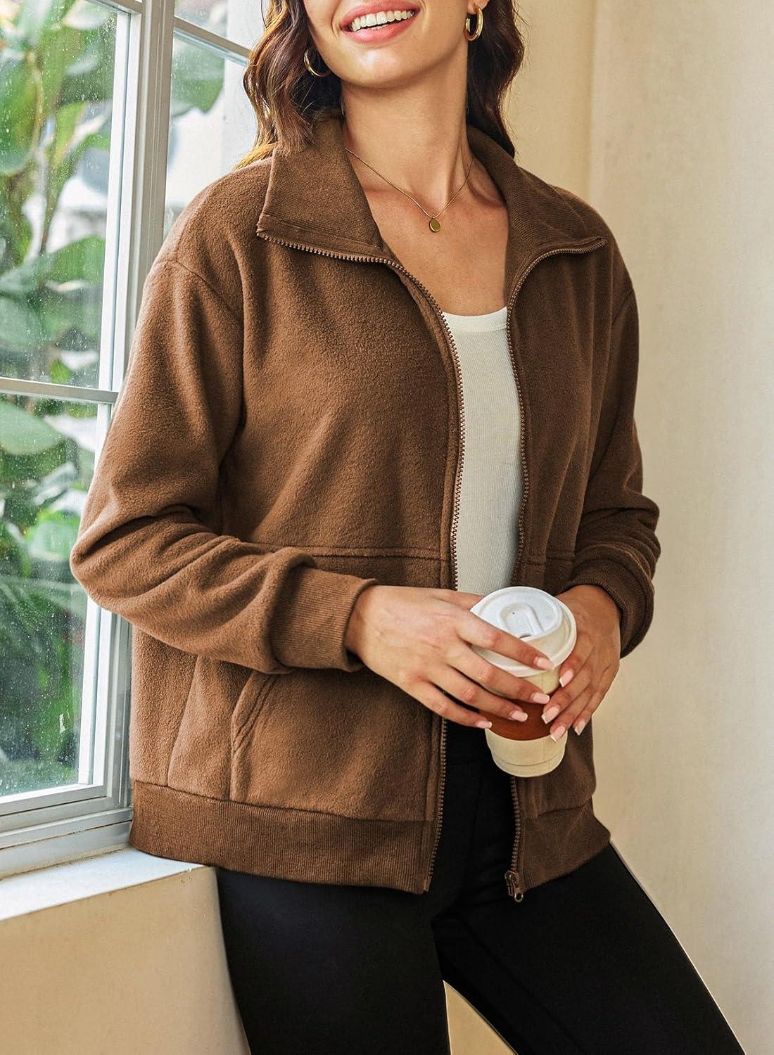 Dokotoo Women’s Lightweight Full Zip Soft Fleece Jacket 2025 Casual Sweatshirts Coat with Pockets(Chestnut)