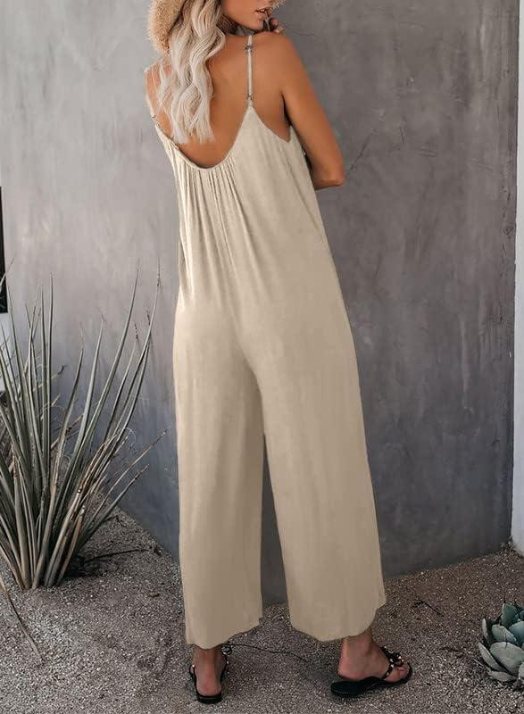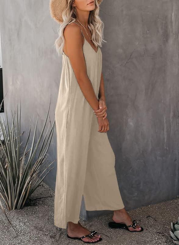 Dokotoo Women's Loose Sleeveless Jumpsuits Adjustable Spaghetti Strap Stretchy Long Pant Romper Jumpsuit with Pockets
