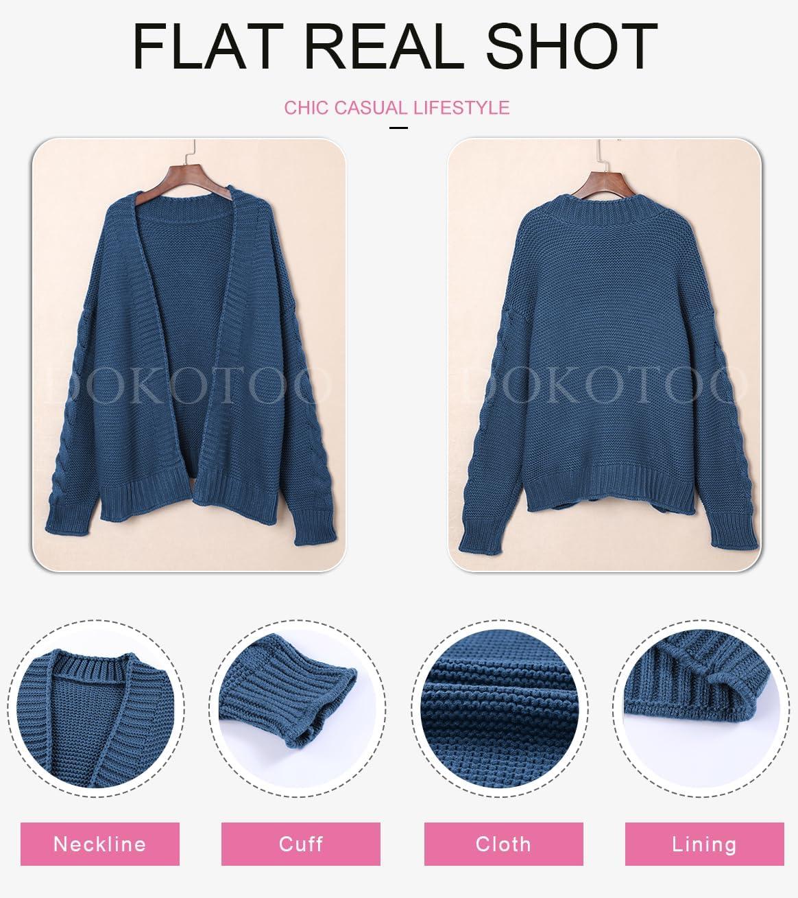 Dokotoo Womens Open Front Long Sleeve Chunky Knit Cardigan Sweaters Loose Outwear Coat(C Blue)
