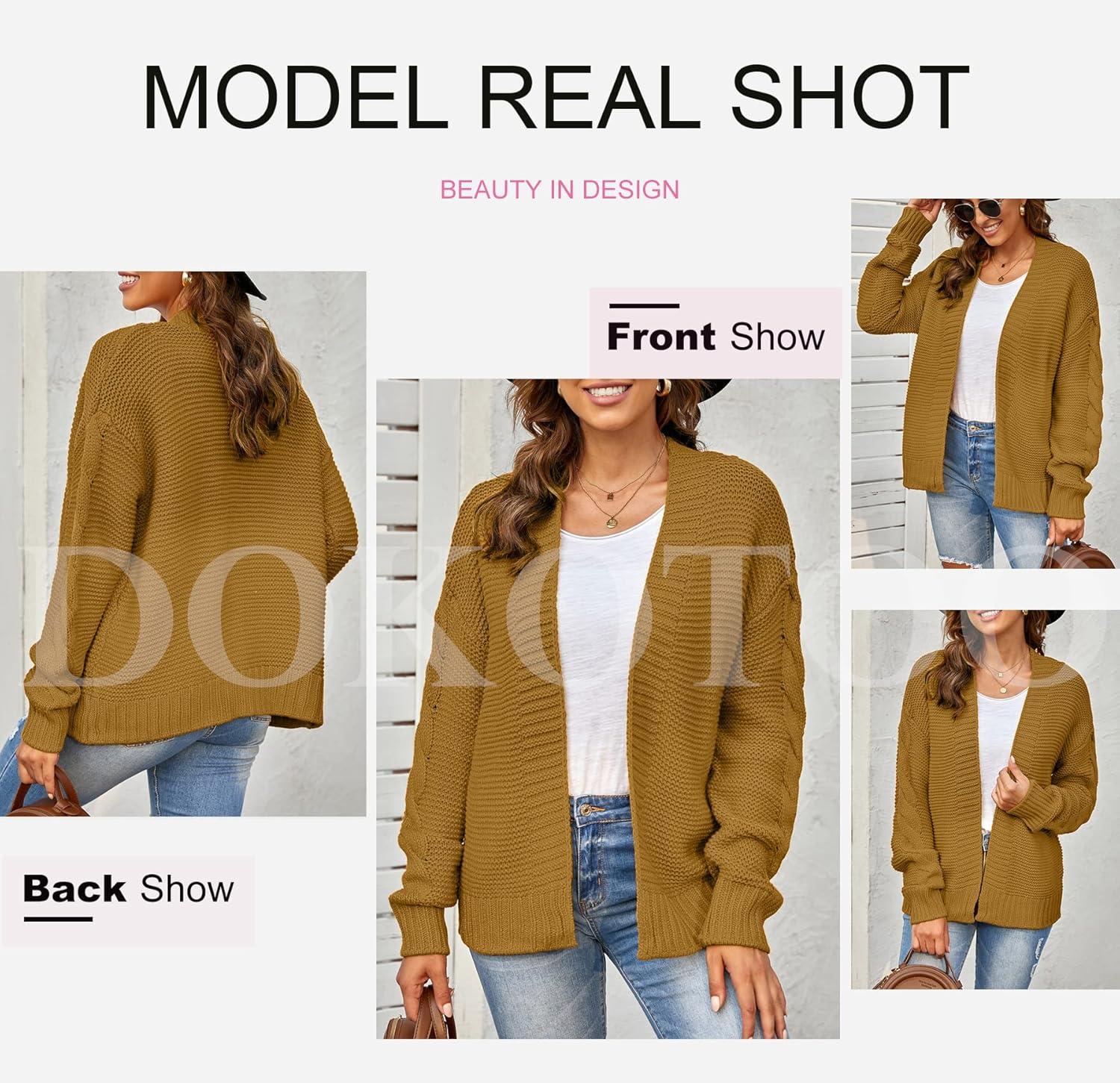 Dokotoo Womens Open Front Long Sleeve Chunky Knit Cardigan Sweaters Loose Outwear Coat(C Brown)