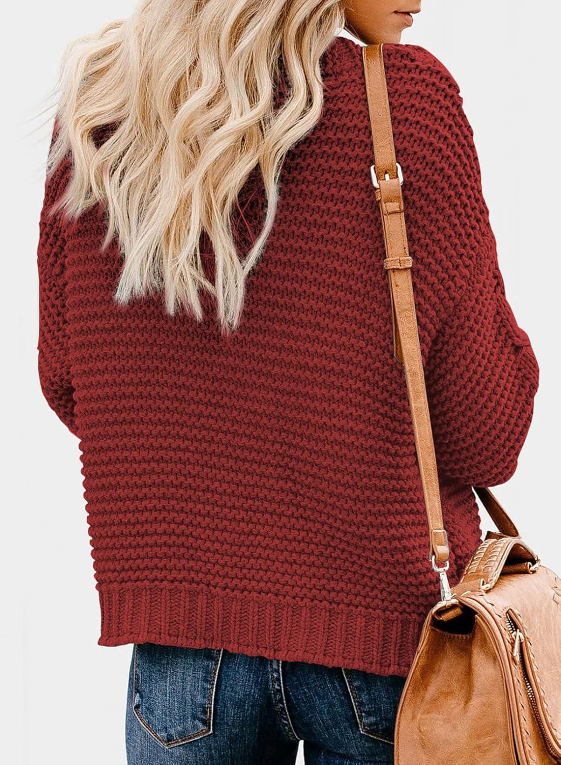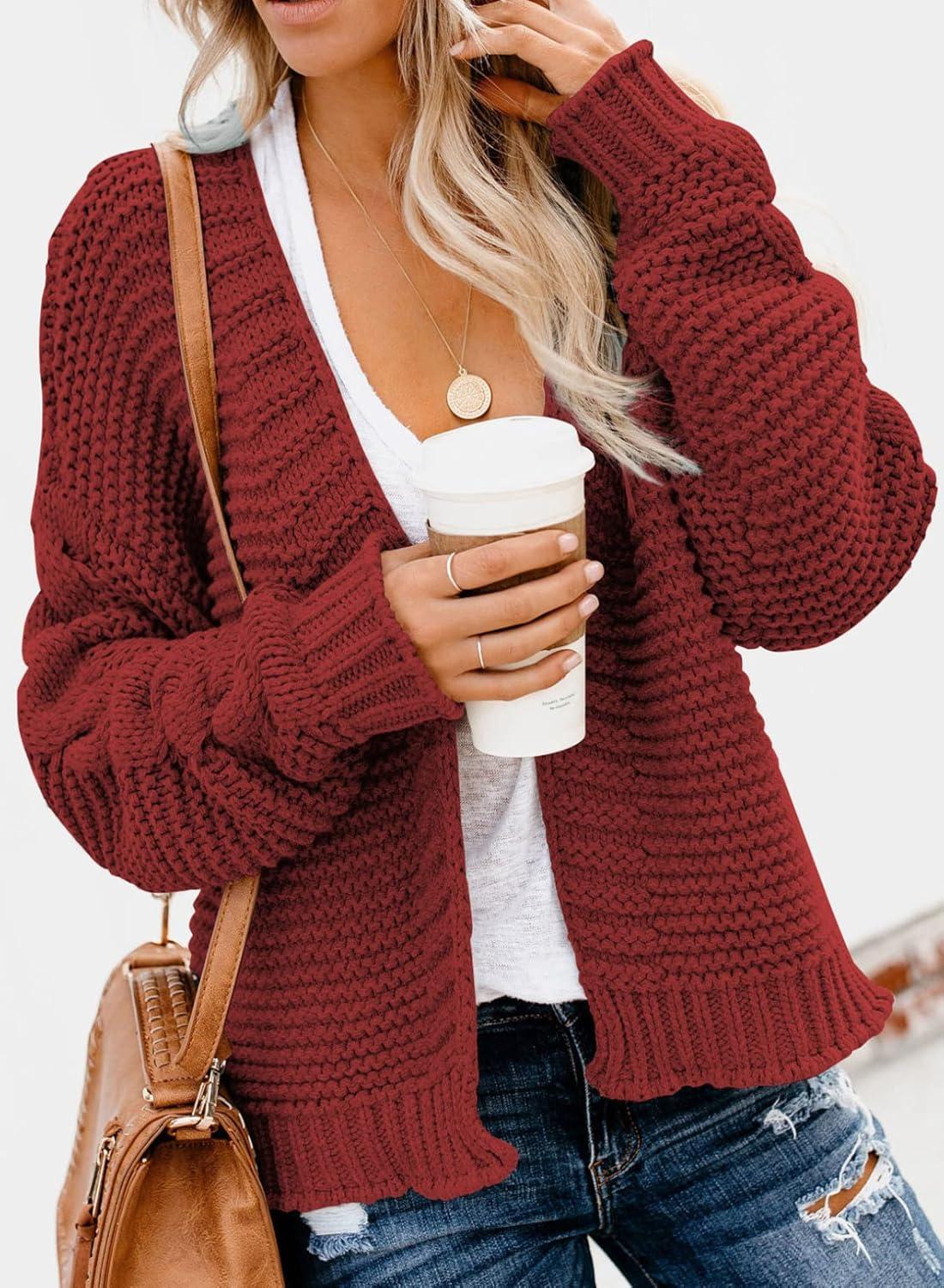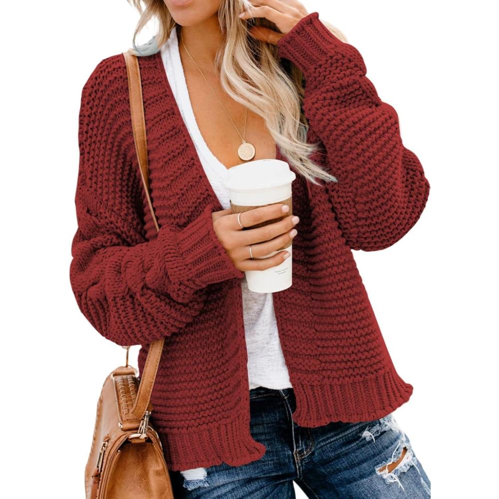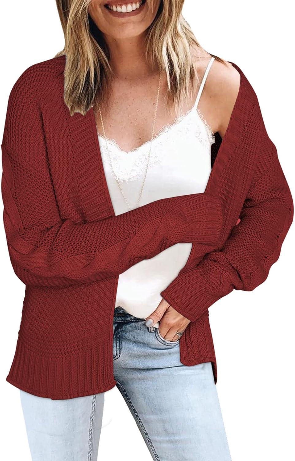 Dokotoo Womens Open Front Long Sleeve Chunky Knit Cardigan Sweaters Loose Outwear Coat(C Red)