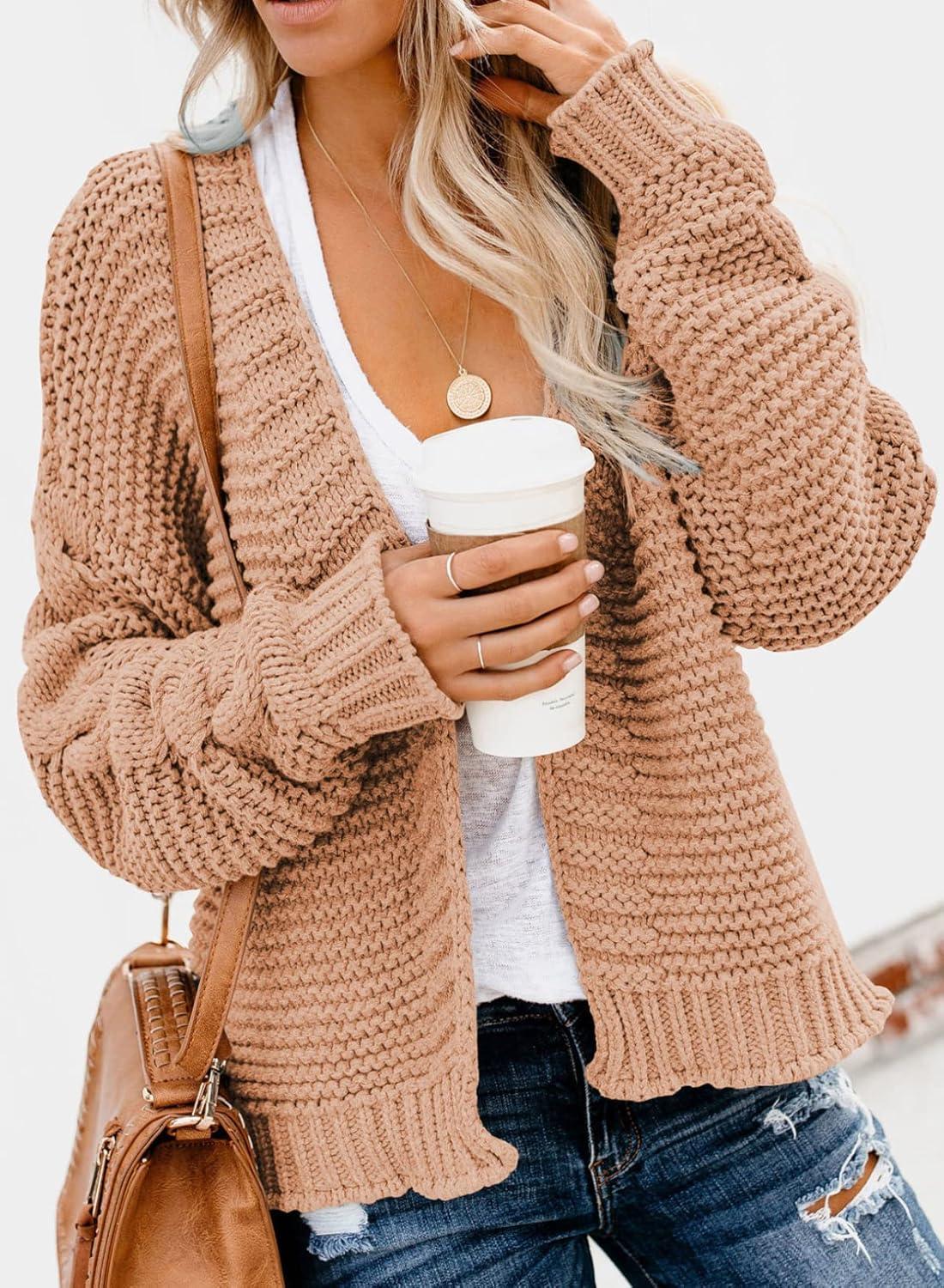 Don’t break the bank! Get the Dokotoo Womens Open Front Long Sleeve Chunky Knit Cardigan Sweaters Loose Outwear Coat(C1 Pink) you want at a price you can afford during our markdown sale.