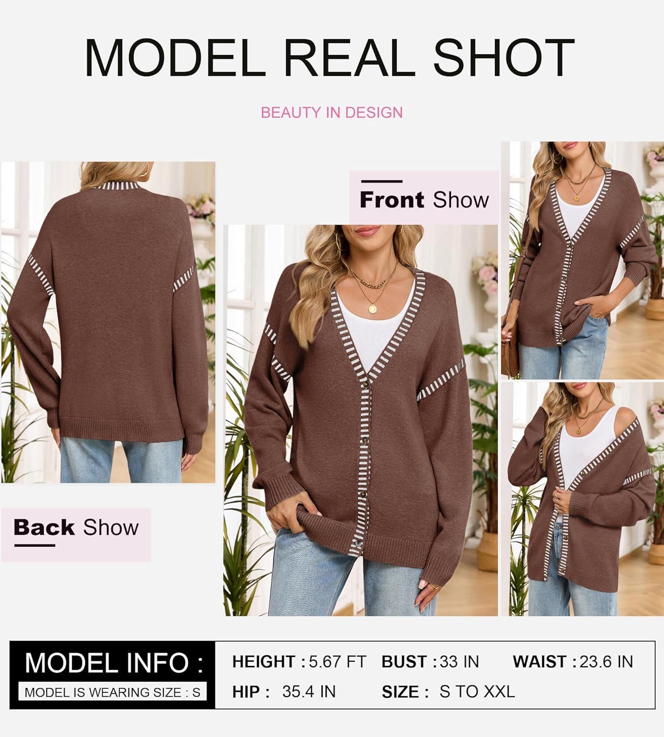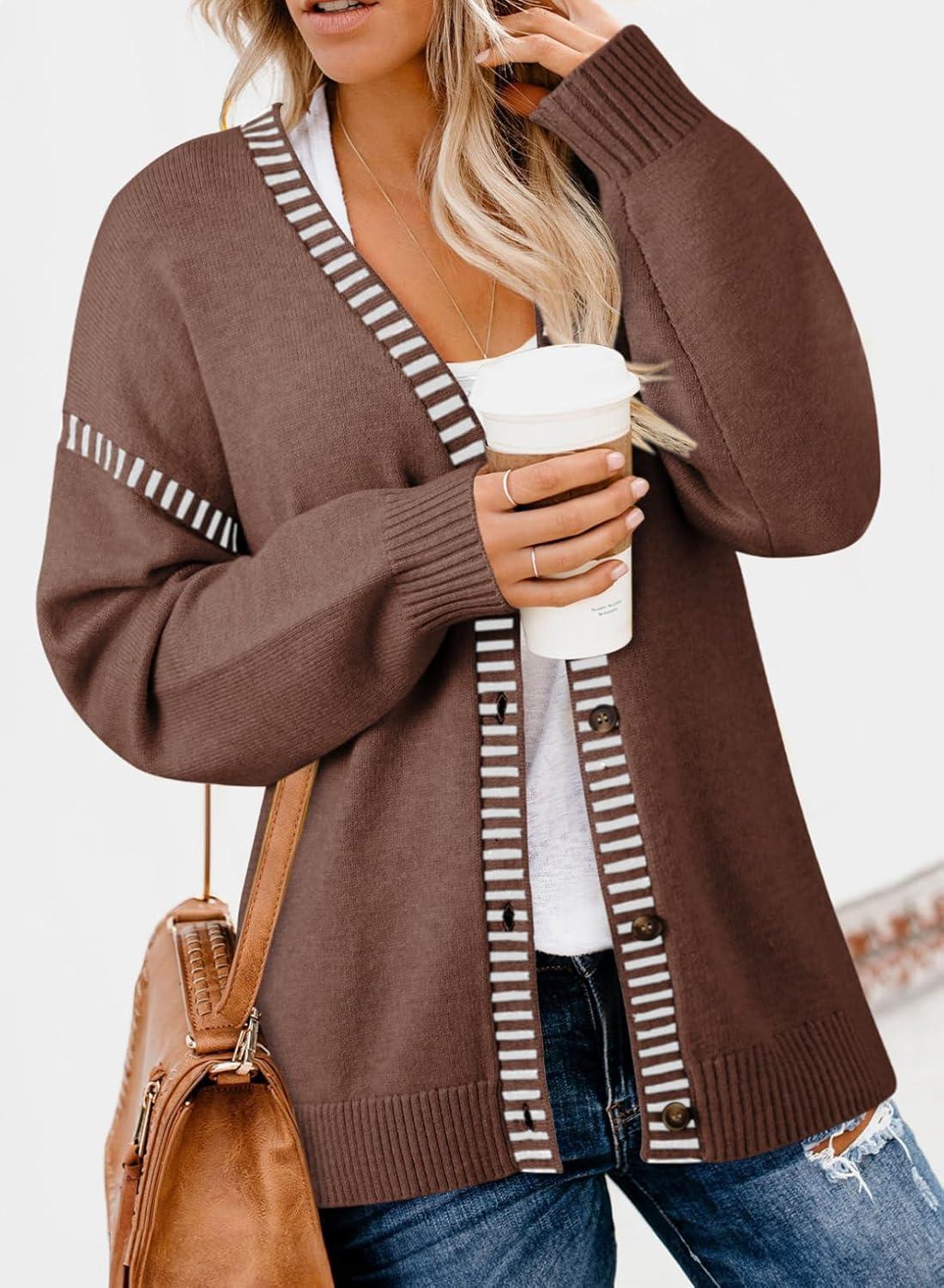 Don’t break the bank! Get the Dokotoo Womens Oversized Cardigan Sweaters Casual Coats Long Sleeve Button Front Stripes Trim Fall Outfits(Brown) you want at a price you can afford during our markdown sale.