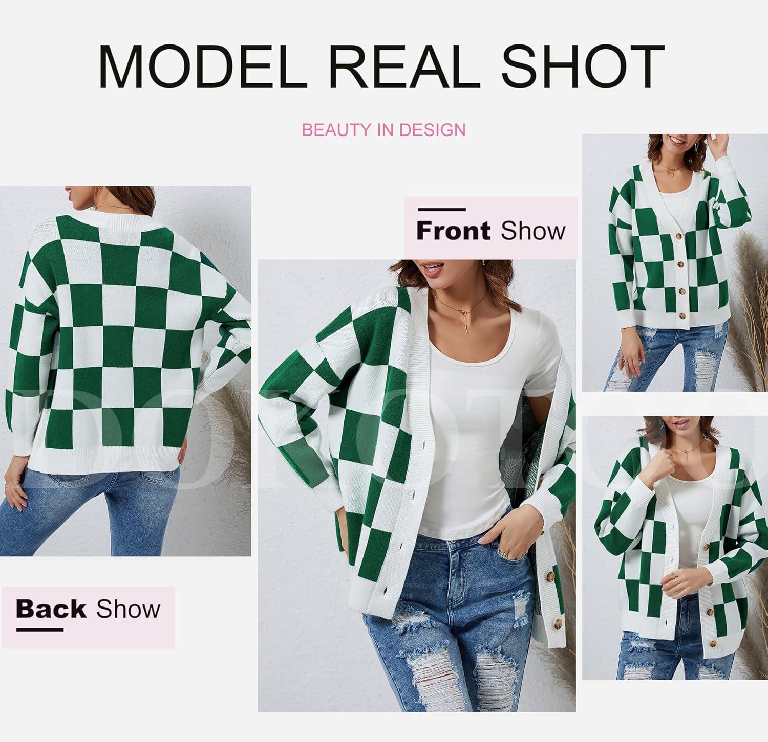 Be the first to review “Dokotoo Womens Plaid V Neck Button Down Long Sleeve Cable Knit Oversized Cardigan Sweaters Tops(Green)”