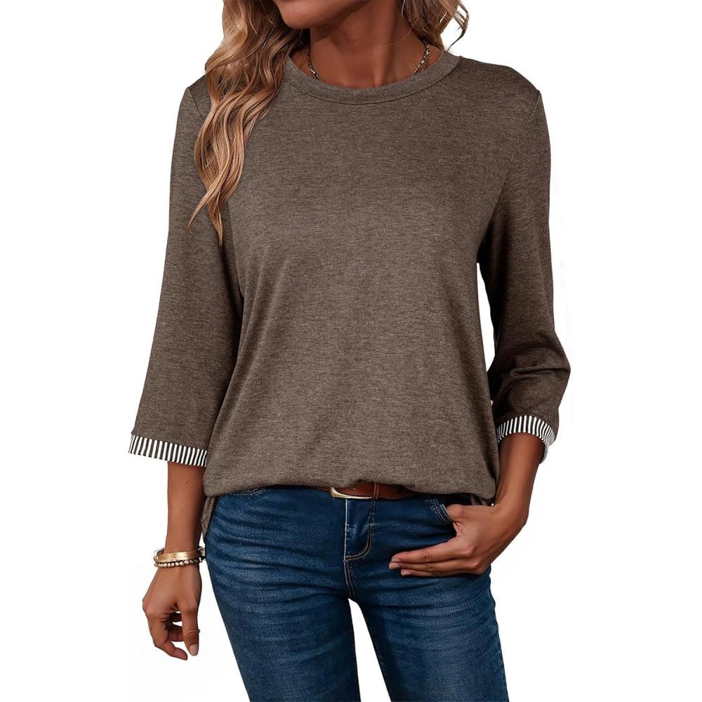 Dokotoo Women’s Shirts Lightweight 2025 Summer Fall Fashion 3/4 Length Sleeve T Shirts Casual Tops Basic Blouses(Dark Brown)