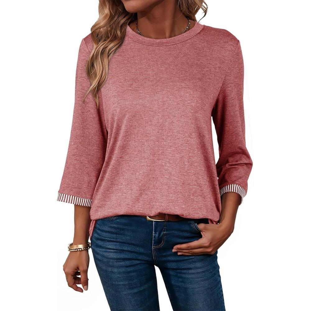 Dokotoo Women’s Shirts Lightweight 2025 Summer Fall Fashion 3/4 Length Sleeve T Shirts Casual Tops Basic Blouses(Peach Blossom)