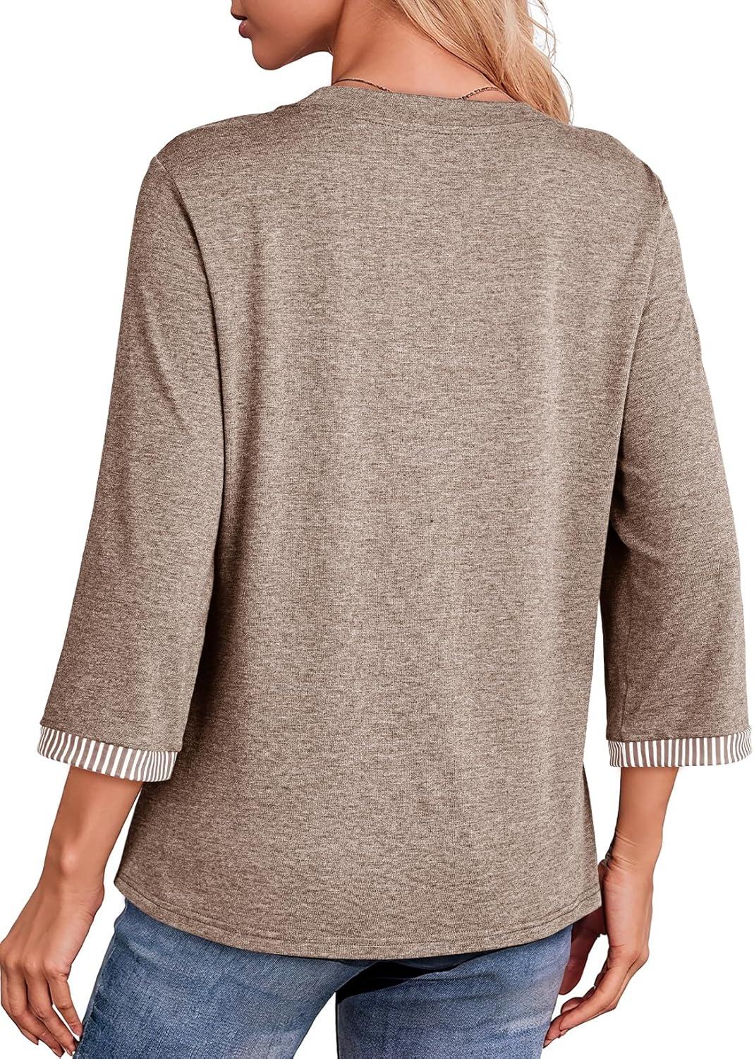 Dokotoo Women’s Shirts Lightweight 2025 Summer Fall Fashion 3/4 Length Sleeve T Shirts Casual Tops Basic Blouses(Smoke Gray Khaki)