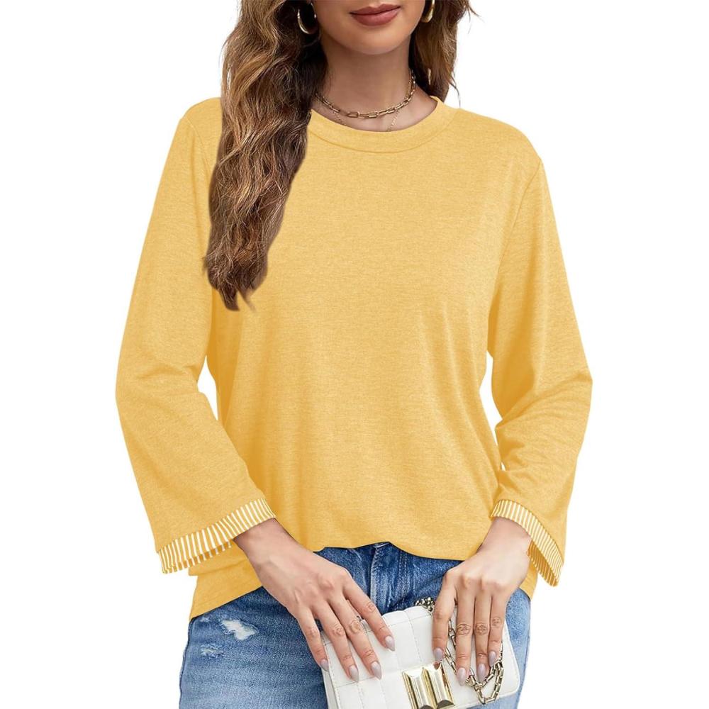 Dokotoo Women’s Shirts Lightweight 2025 Summer Fall Fashion 3/4 Length Sleeve T Shirts Casual Tops Basic Blouses(Yellow)