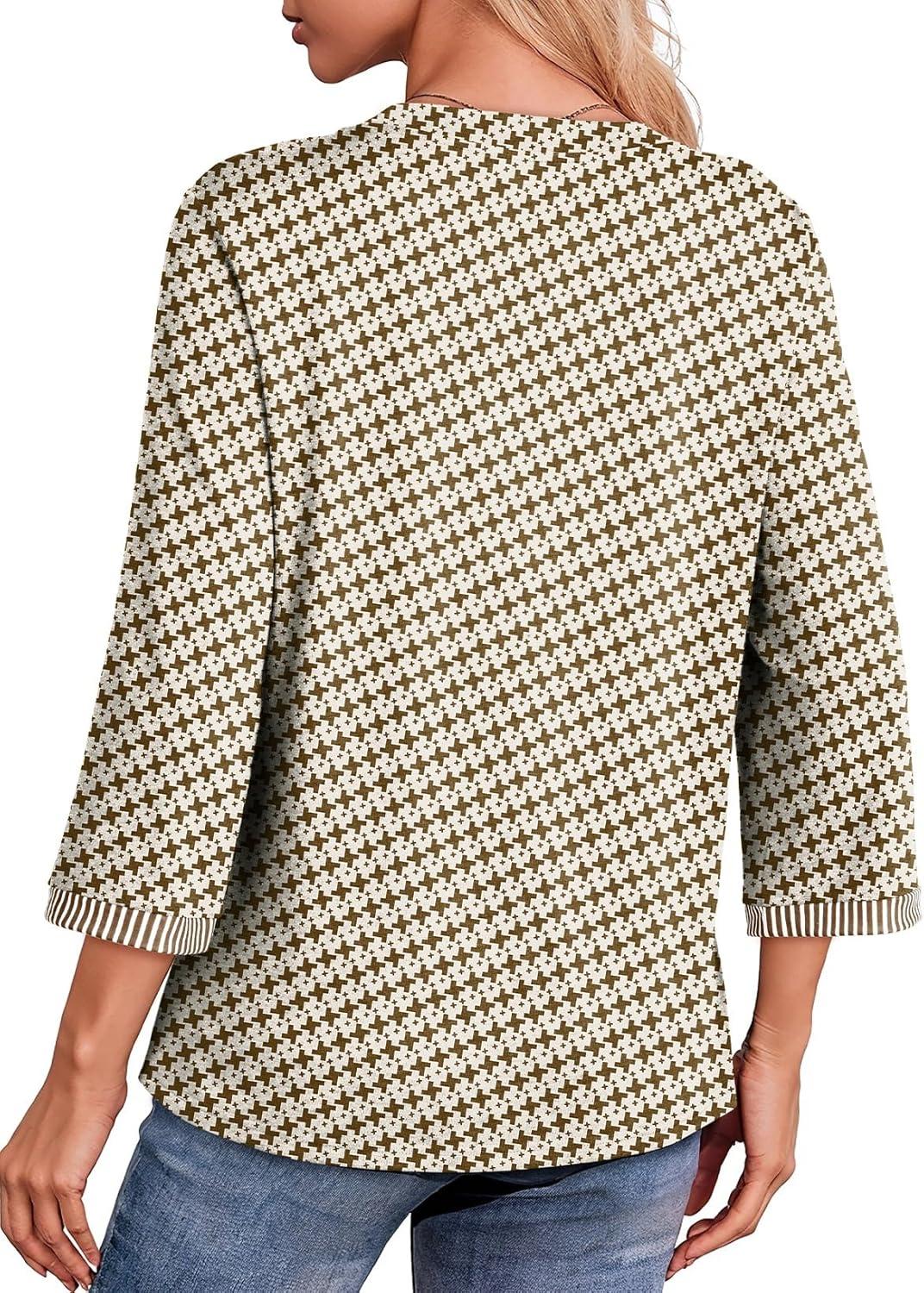 Dokotoo Women’s Shirts Lightweight 2025 Summer Fall Fashion 3/4 Length Sleeve T Shirts Casual Tops Basic Blouses(Z Khaki)