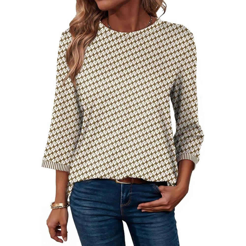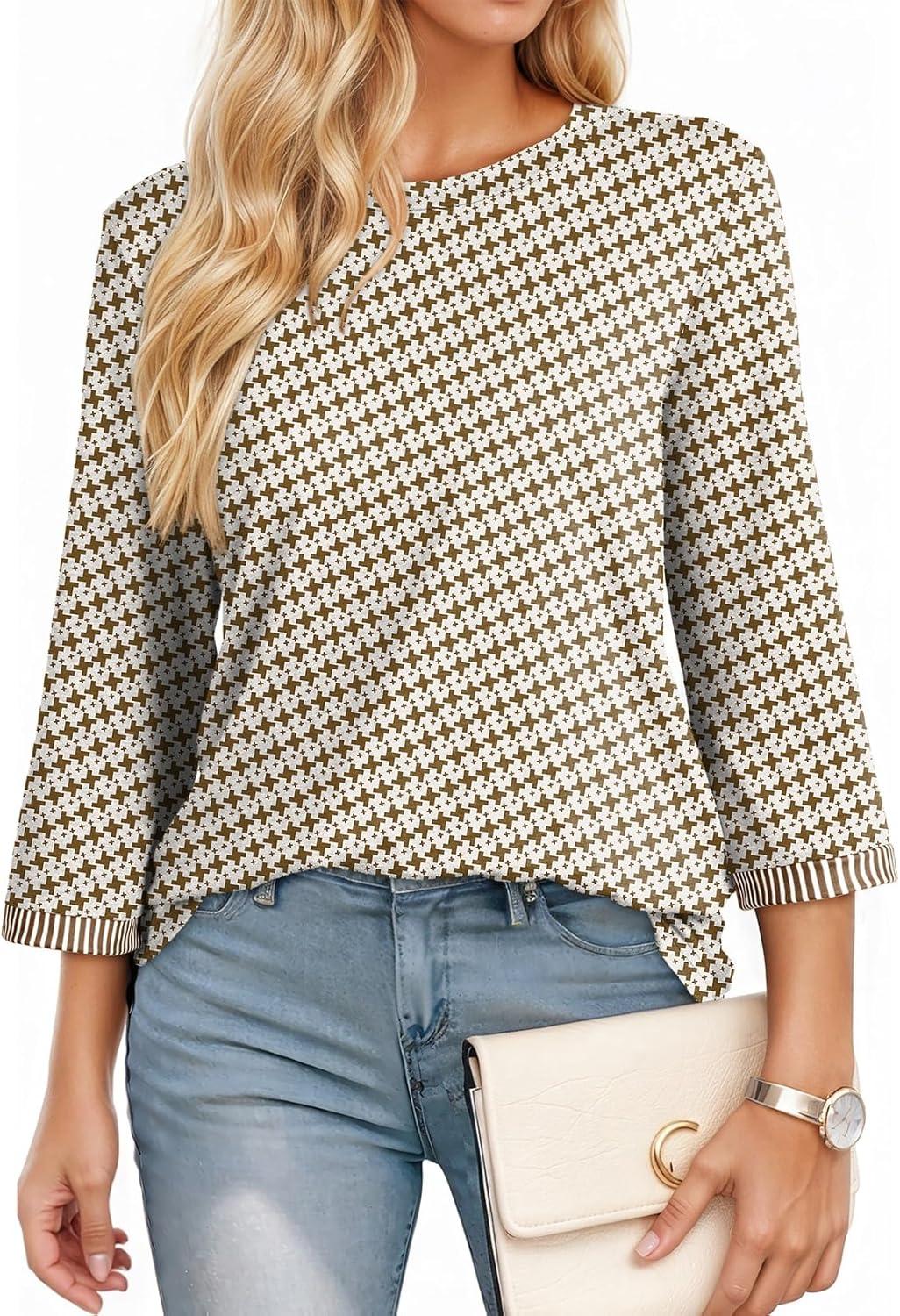 Dokotoo Women’s Shirts Lightweight 2025 Summer Fall Fashion 3/4 Length Sleeve T Shirts Casual Tops Basic Blouses(Z Brown)