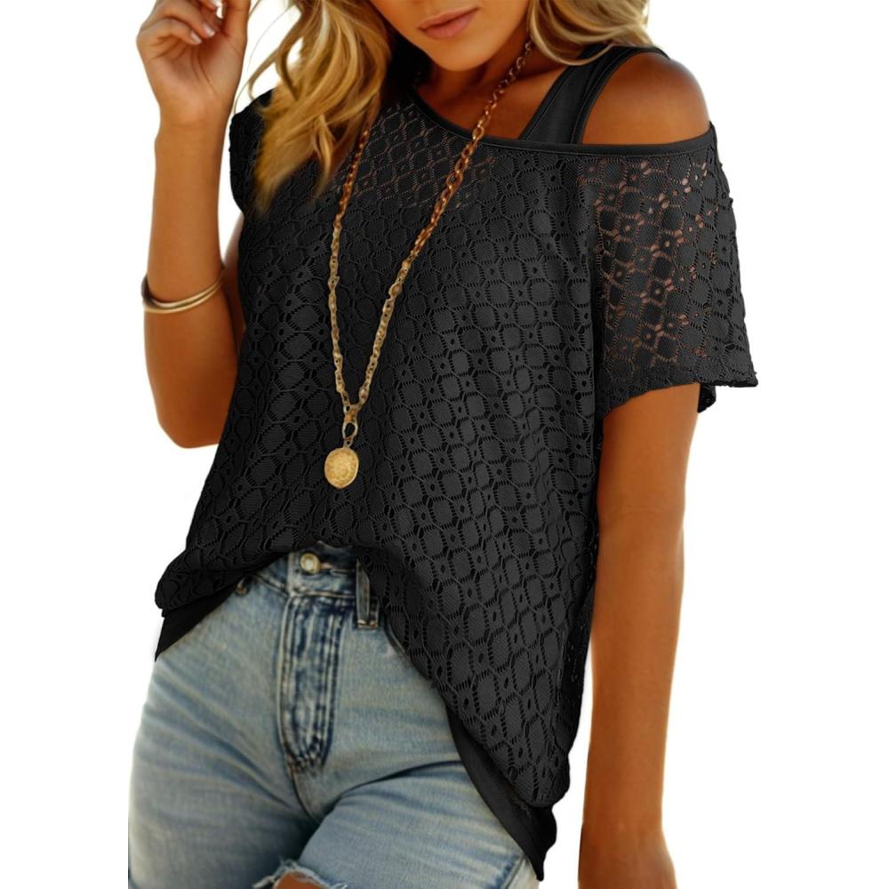 Dokotoo Women’s Summer 2026 Crochet Hollow Out Lace Boho Tops Lining Two Piece Beach Vacation Young Fashion Shirts(Black)