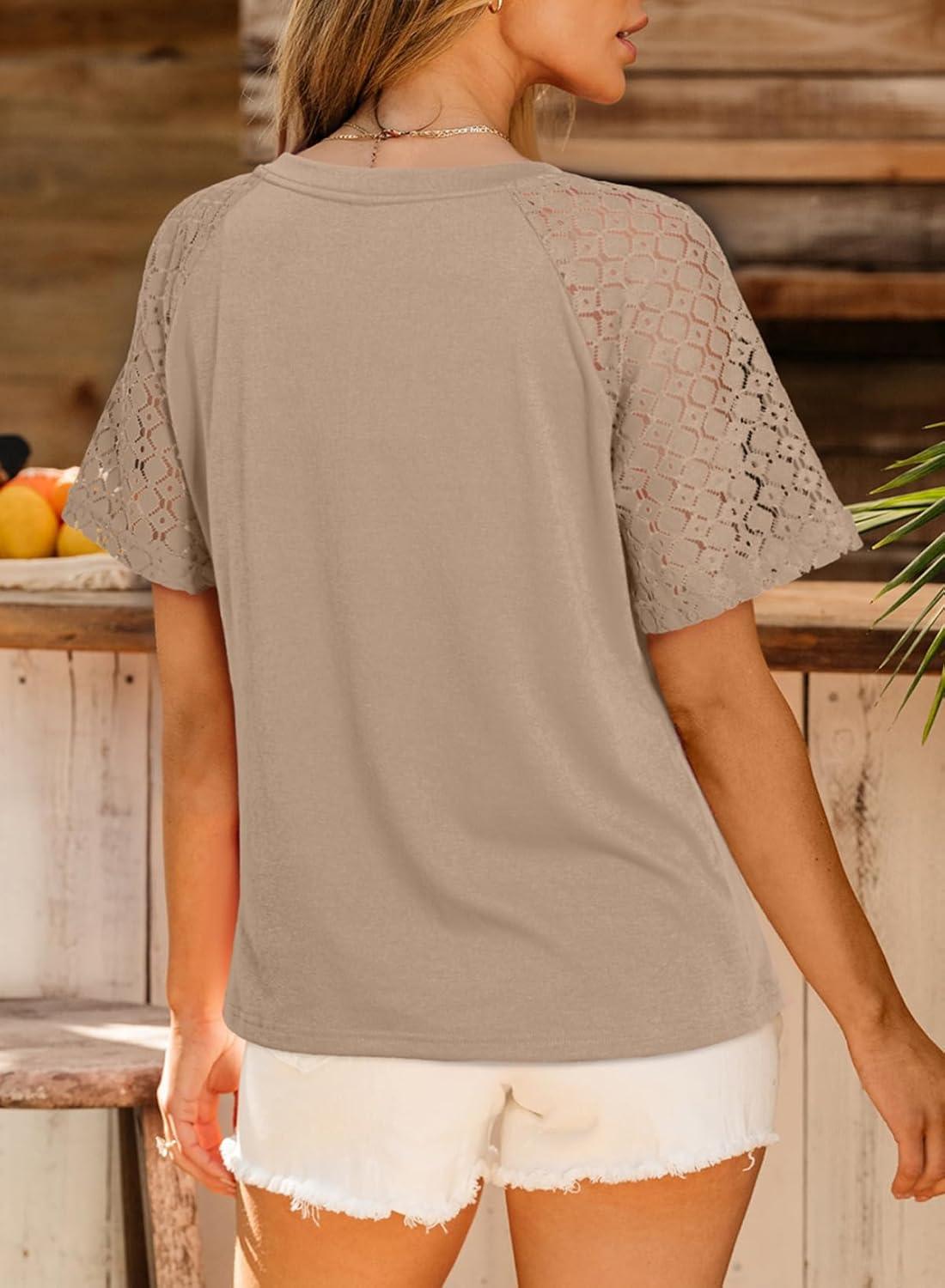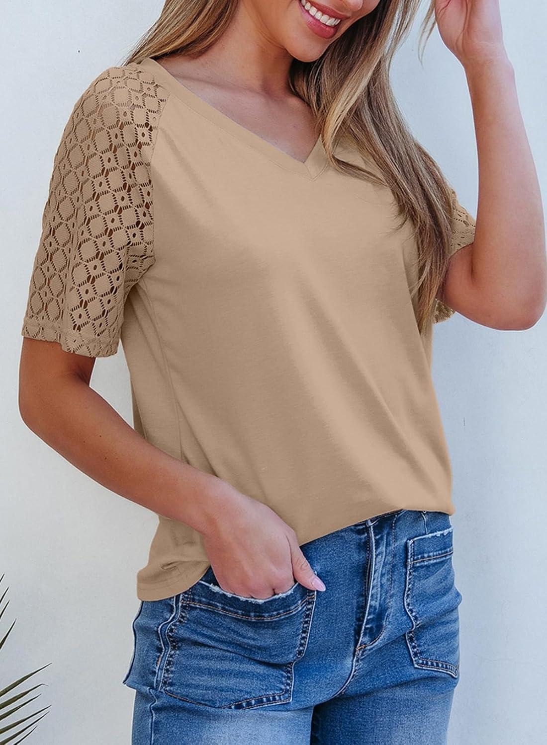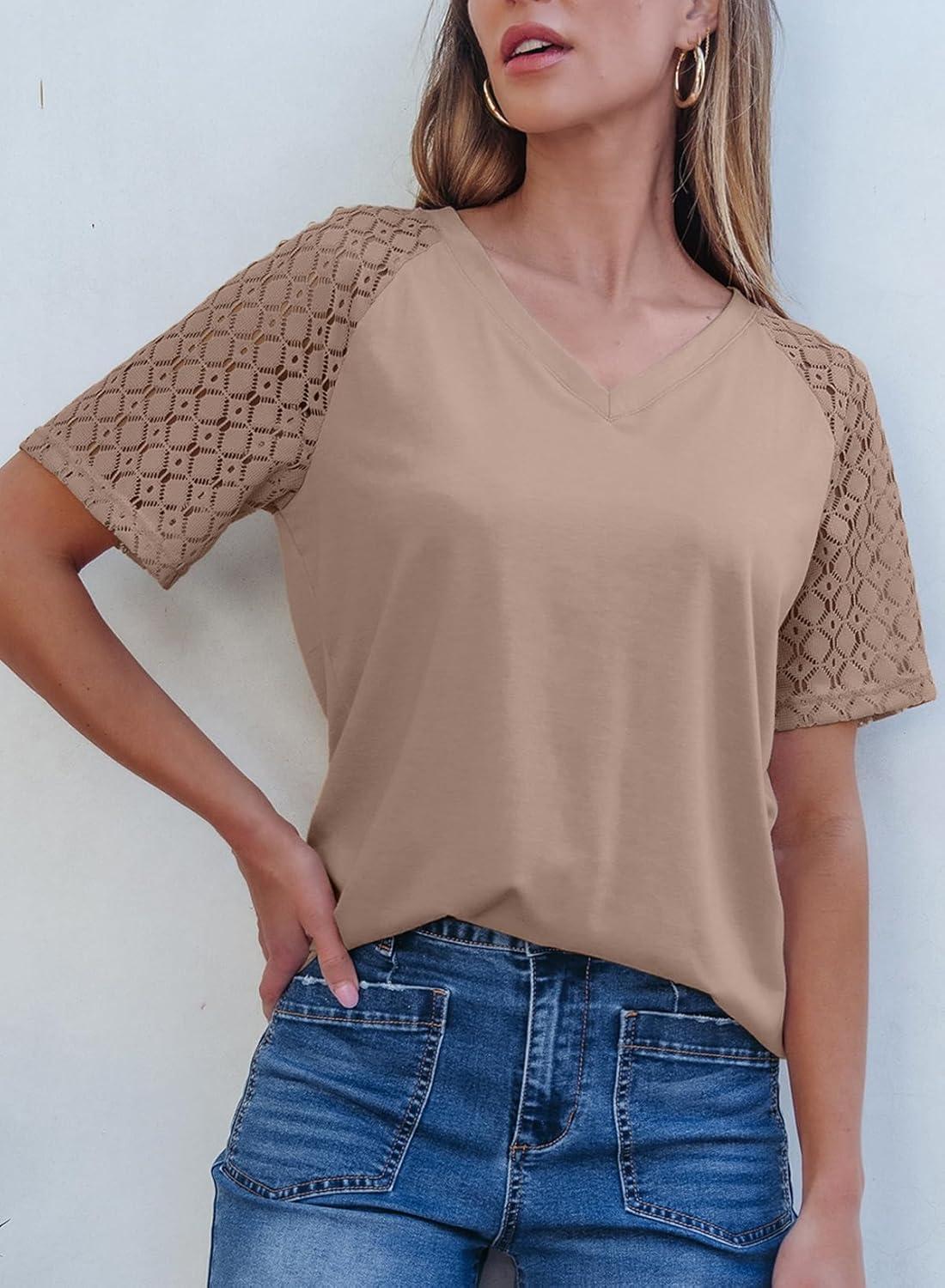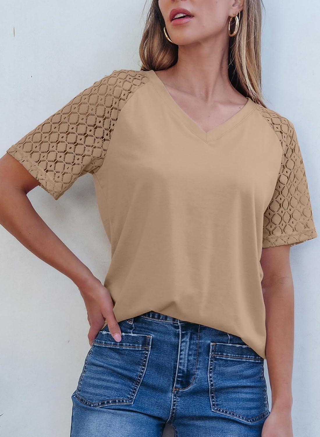 Dokotoo Womens Summer Tops 2026 Short Sleeve Shirts Business Casual Tops Fashion Casual Blouses(Brown)