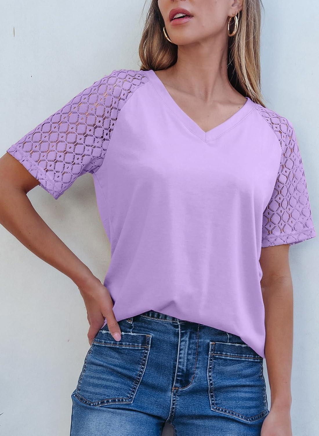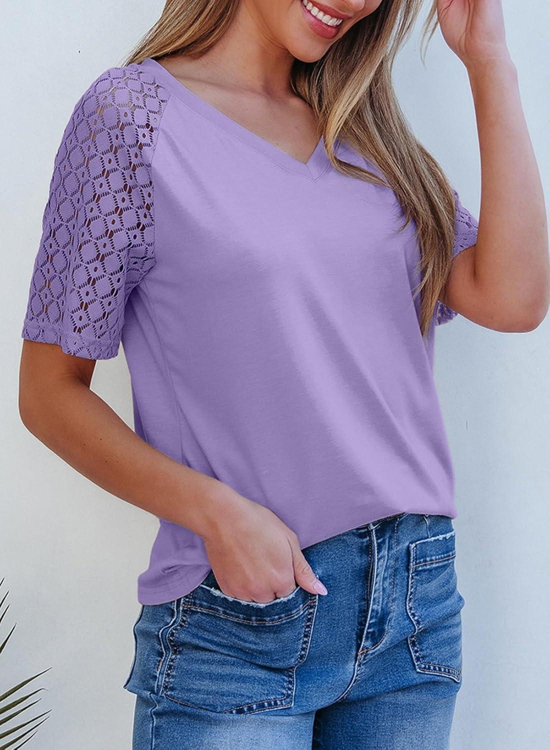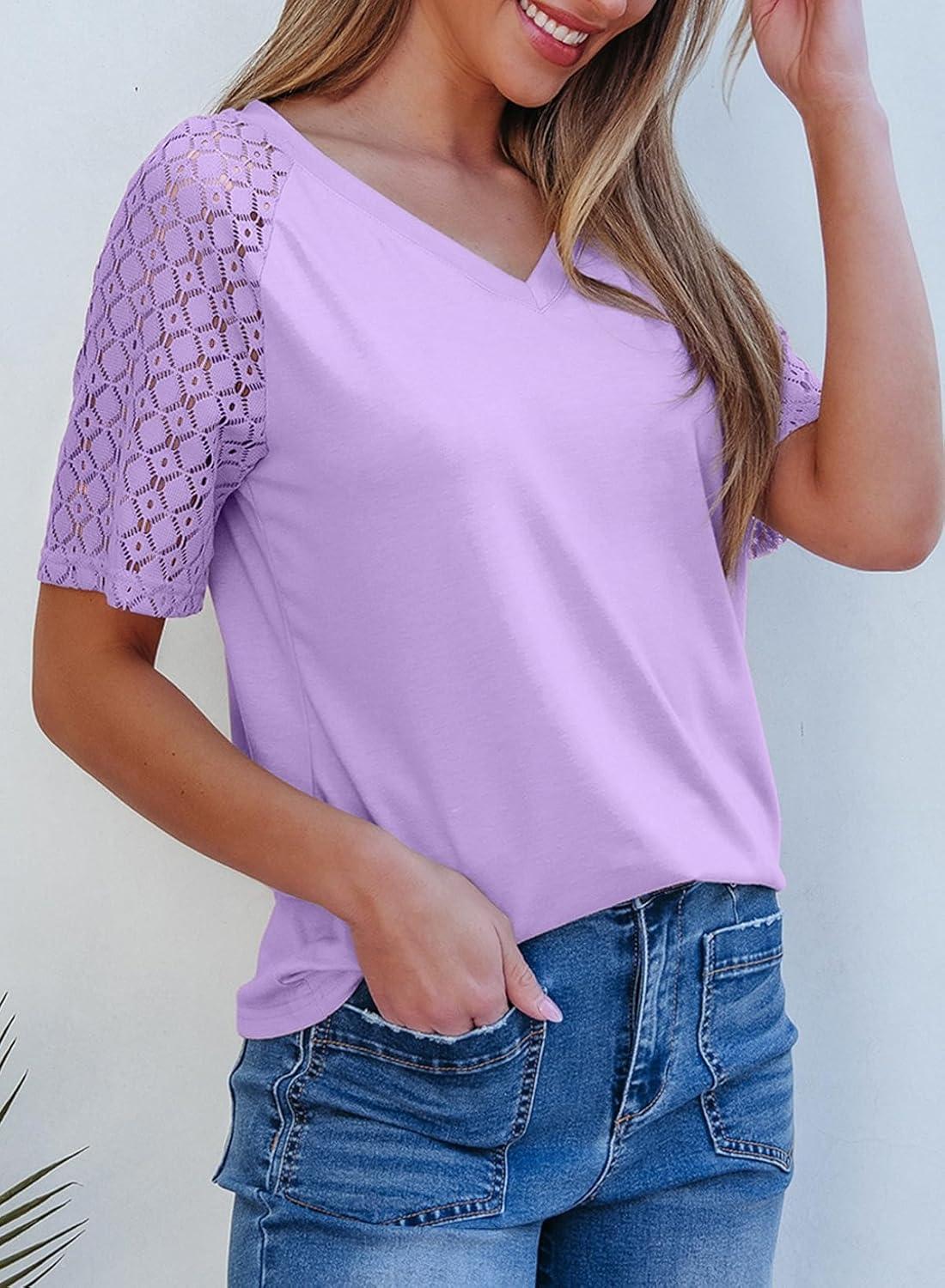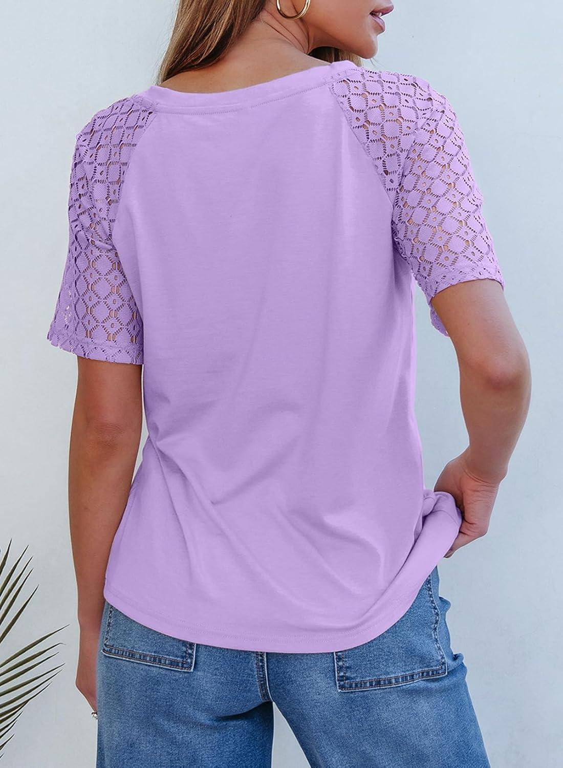 Dokotoo Womens Summer Tops 2026 Short Sleeve Shirts Business Casual Tops Fashion Casual Blouses(Purple)