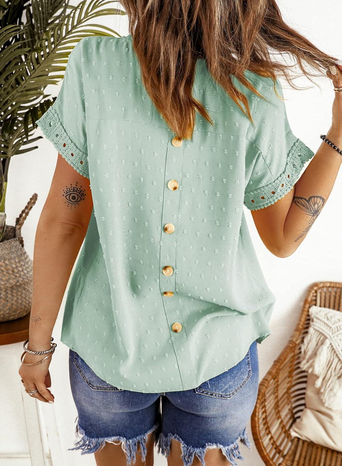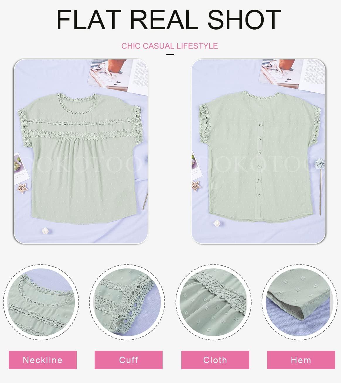 Get a free gift with your purchase of Dokotoo Womens Summer Tops Crewneck Lace Crochet Short Sleeve Shirts Casual Chiffon Blouses(1 Green). Limited quantities available!