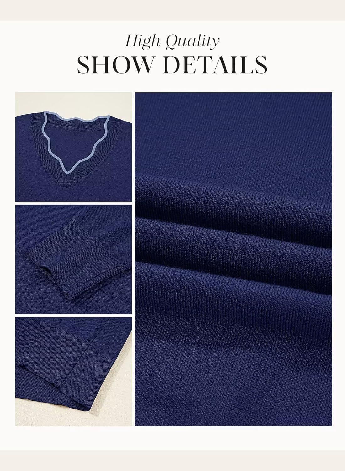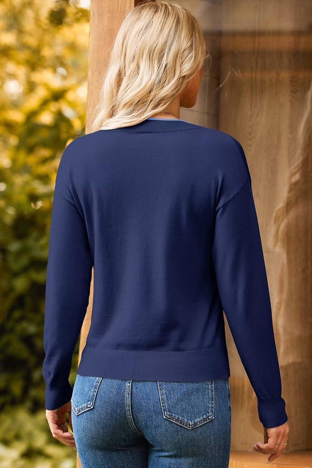 Dokotoo Women’s Sweaters Casual V Neck Long Sleeve Lightweight Sweaters Loose Solid Fall Tops Pullover Sweater(Blue)