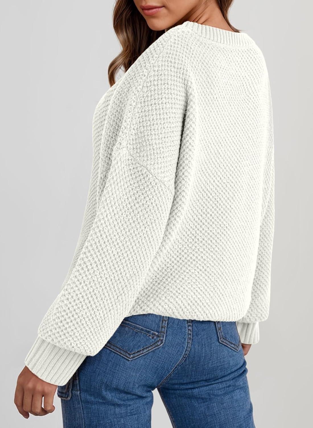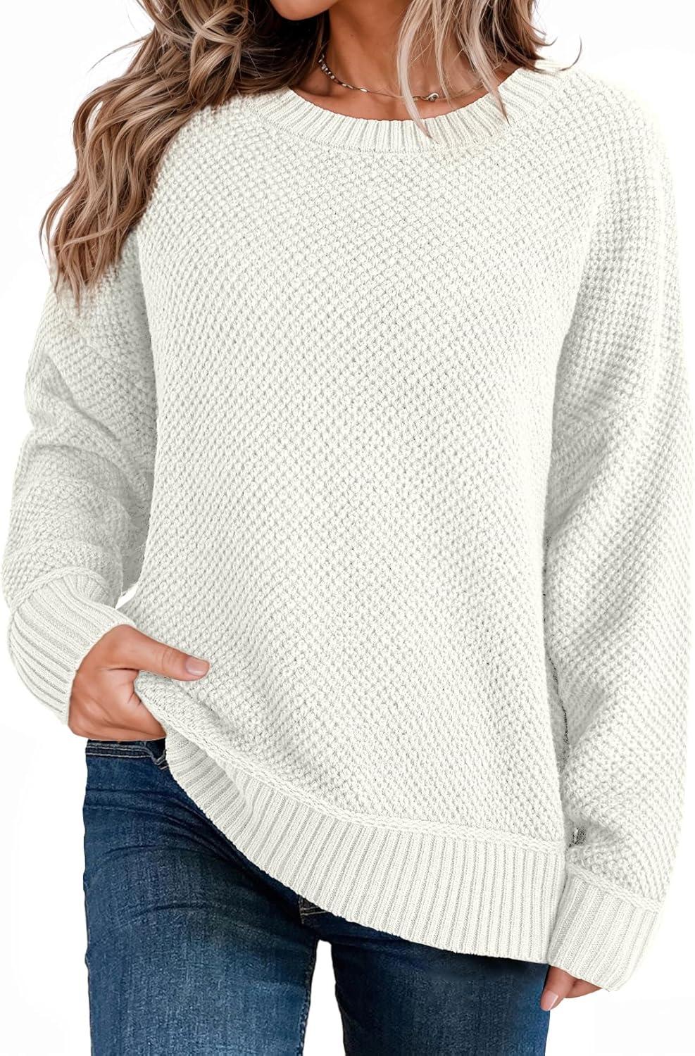 Dokotoo Womens Sweaters Crewneck Ribbed Knit Waffle Pullover Sweaters 2025 Fall Winter Fashion Clothes(White)