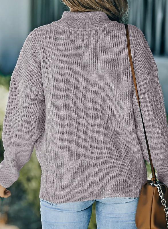 Dokotoo Womens Sweaters Long Sleeve 1/4 Zip Pullover Polo V Neck Dressy Casual Tops(B1 Rose)