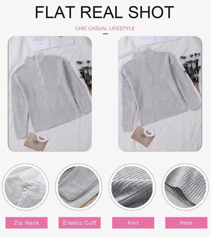 Dokotoo Womens Sweaters Long Sleeve 1/4 Zip Pullover Polo V Neck Dressy Casual Tops(A1 Gray)