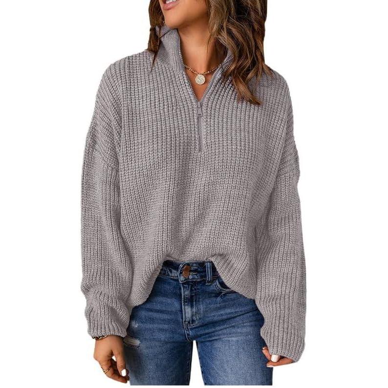 Dokotoo Womens Sweaters Long Sleeve 1/4 Zip Pullover Polo V Neck Dressy Casual Tops(B Gray)