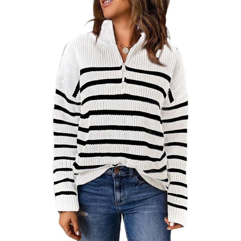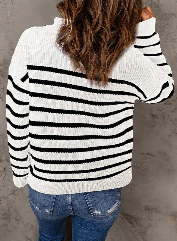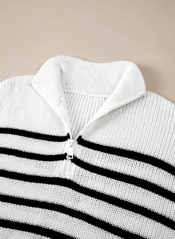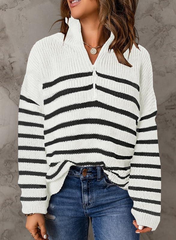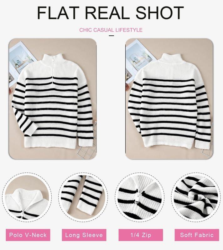Dokotoo Womens Sweaters Long Sleeve 1/4 Zip Pullover Polo V Neck Dressy Casual Tops(Awhite-black)