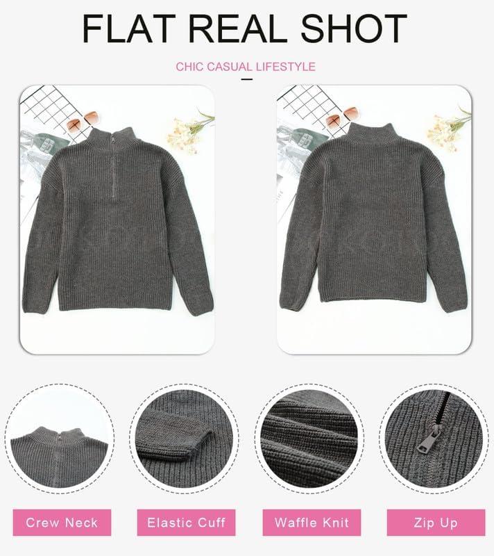 Dokotoo Womens Sweaters Long Sleeve 1/4 Zip Pullover Polo V Neck Dressy Casual Tops(A1 Gray)