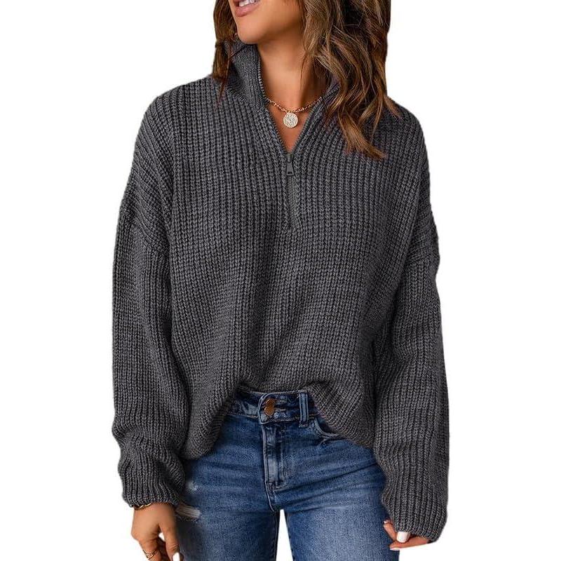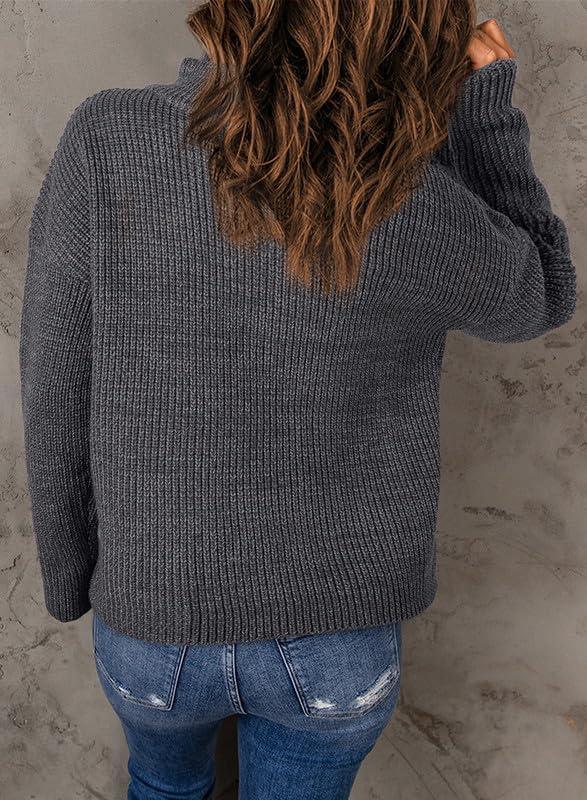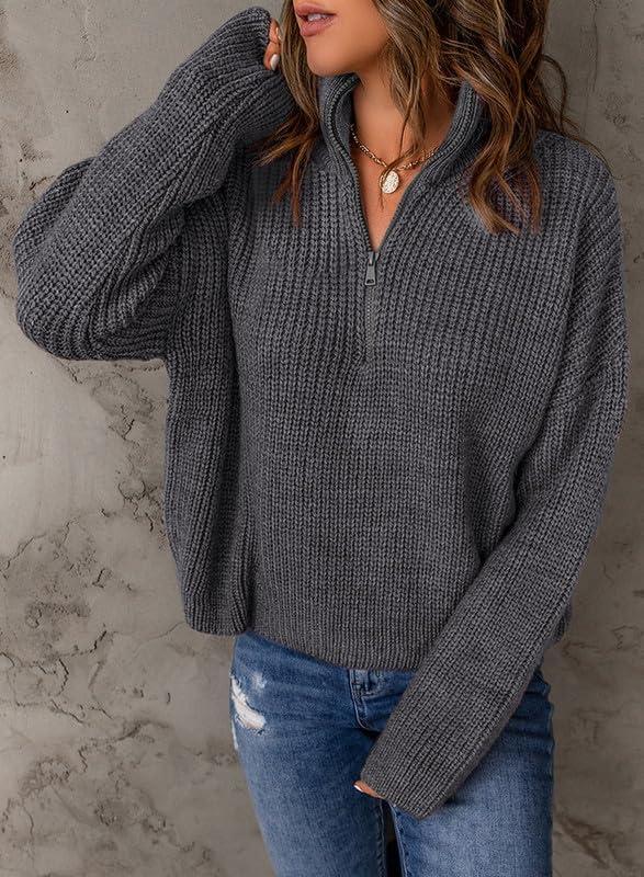 Dokotoo Womens Sweaters Long Sleeve 1/4 Zip Pullover Polo V Neck Dressy Casual Tops(B Gray)
