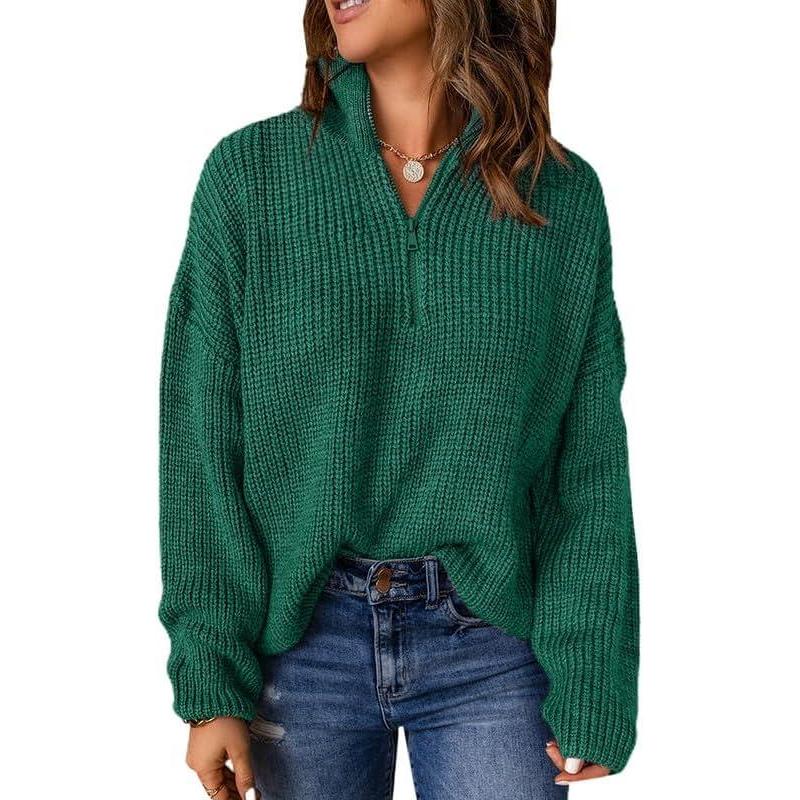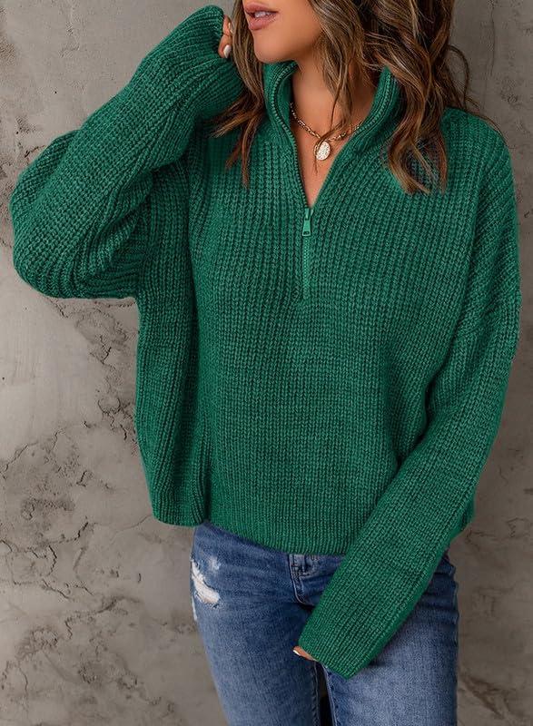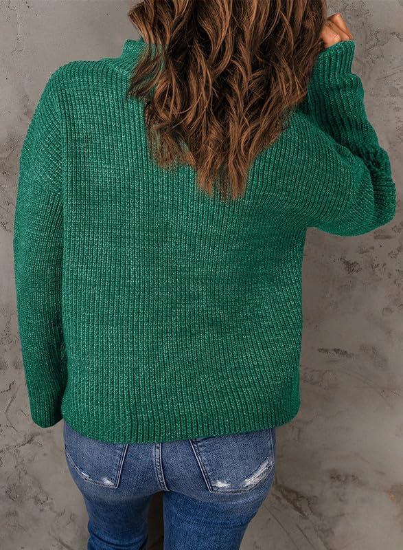 Dokotoo Womens Sweaters Long Sleeve 1/4 Zip Pullover Polo V Neck Dressy Casual Tops(B Green)
